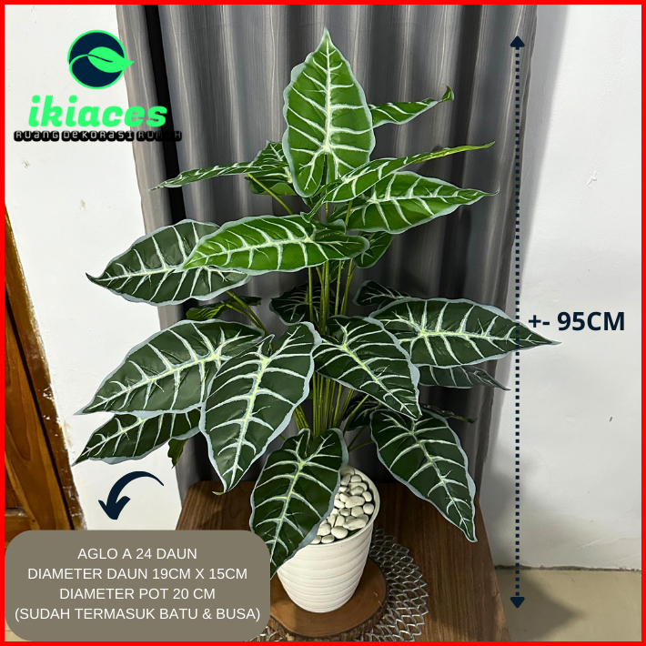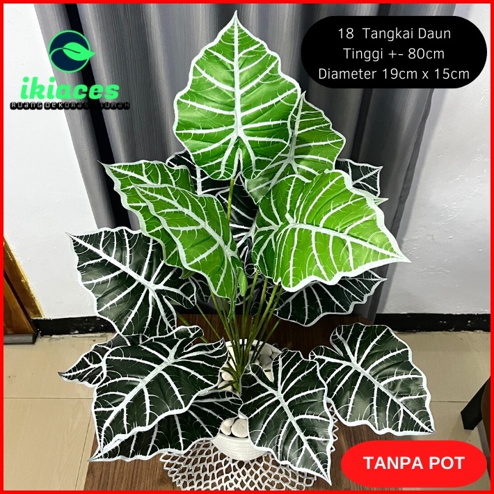 Daun Aglonema Artificial Daun Keladi Plastik Pot Bunga Hias Artifisial Daun Keladi Hias Dekorasi Pohon Plastik