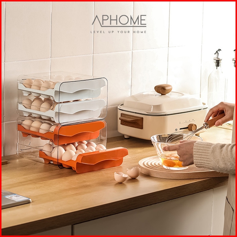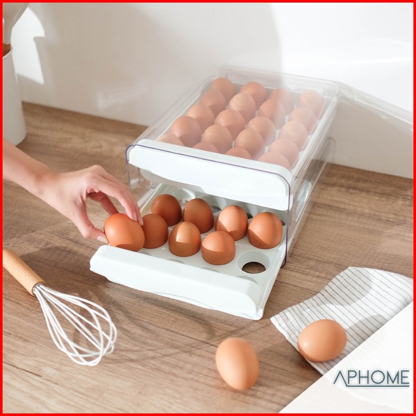 Aphome Tempat Penyimpanan Telur Rak Telor Desain Laci Bening Kotak Egg Storage Papan Telur Egg Tray Rega