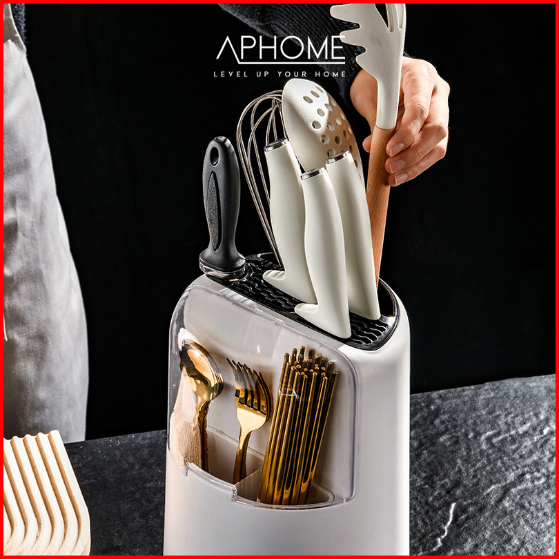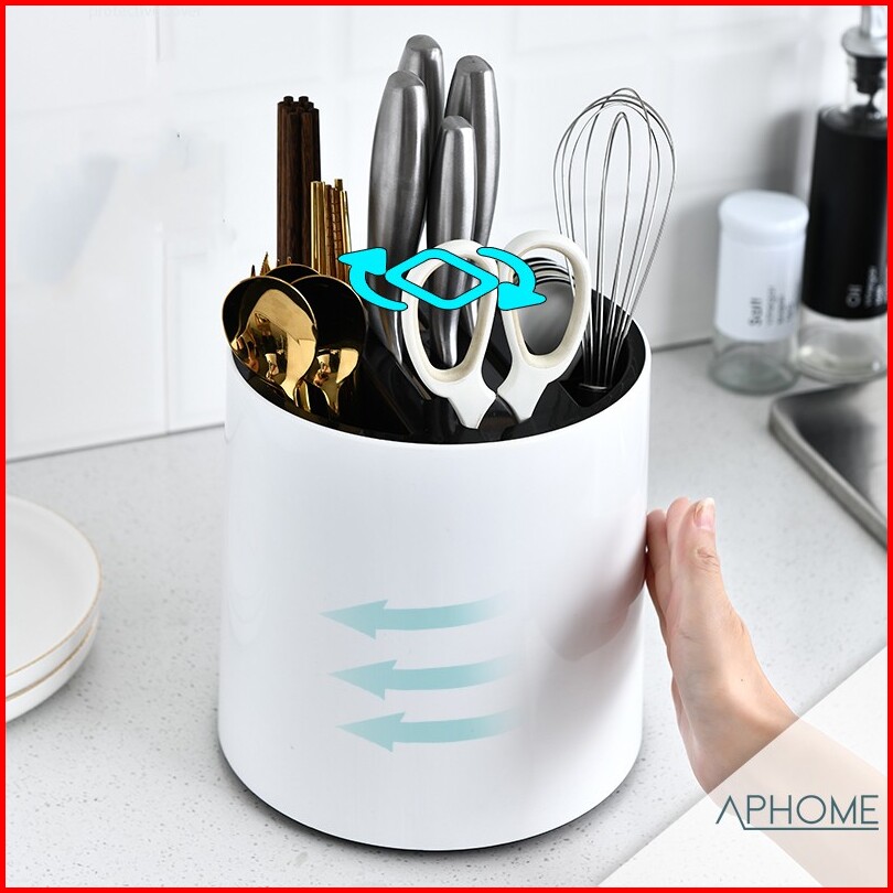 Aphome Wadah Alat Makan Berputar Rak Dapur Tempat Penyimpanan Sendok Garpu Pisau Putar Elisa Salma