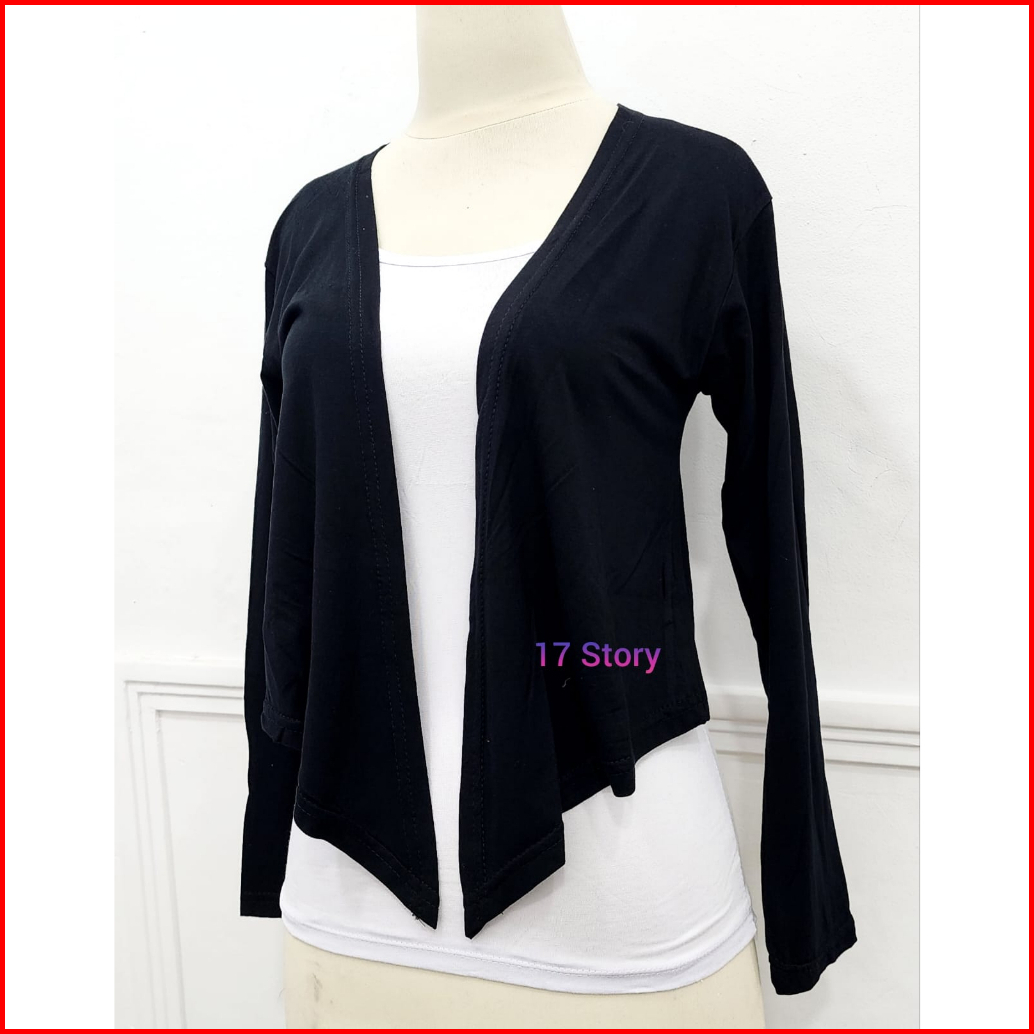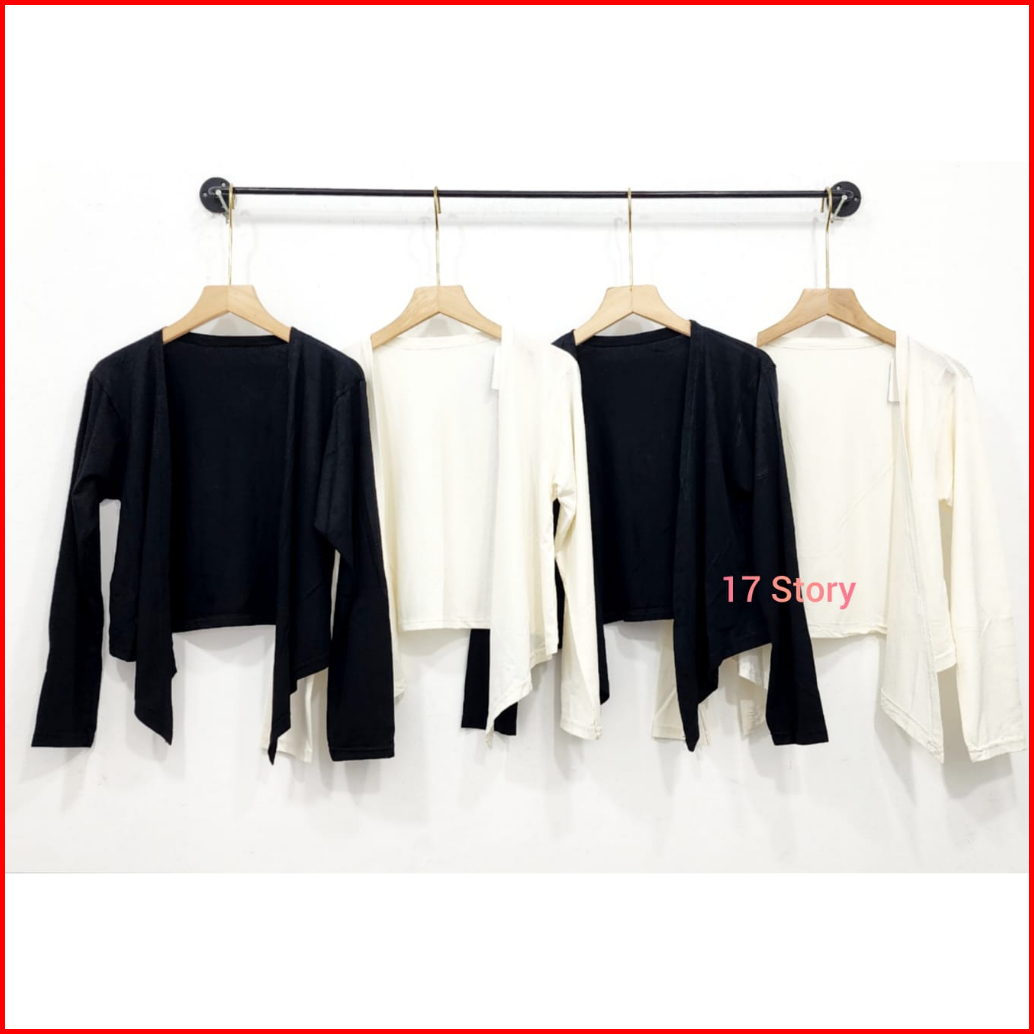 Cardigan Crop Top Wanita Basic Polos Kekinian Korean Style Premium Lengan Panjang Bahan Adem Dan Lembut