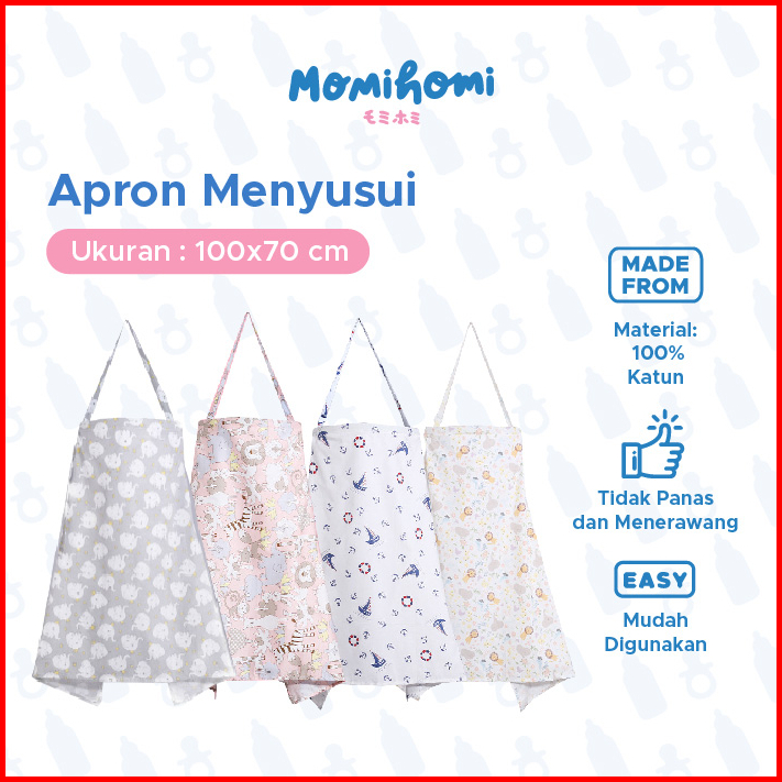 Momi Homi Apron Menyusui Tidak Nerawang Nursing Apron Cotton Nursing Celemek Cover Kain Penutup Ibu Menyusui Bayi Motif