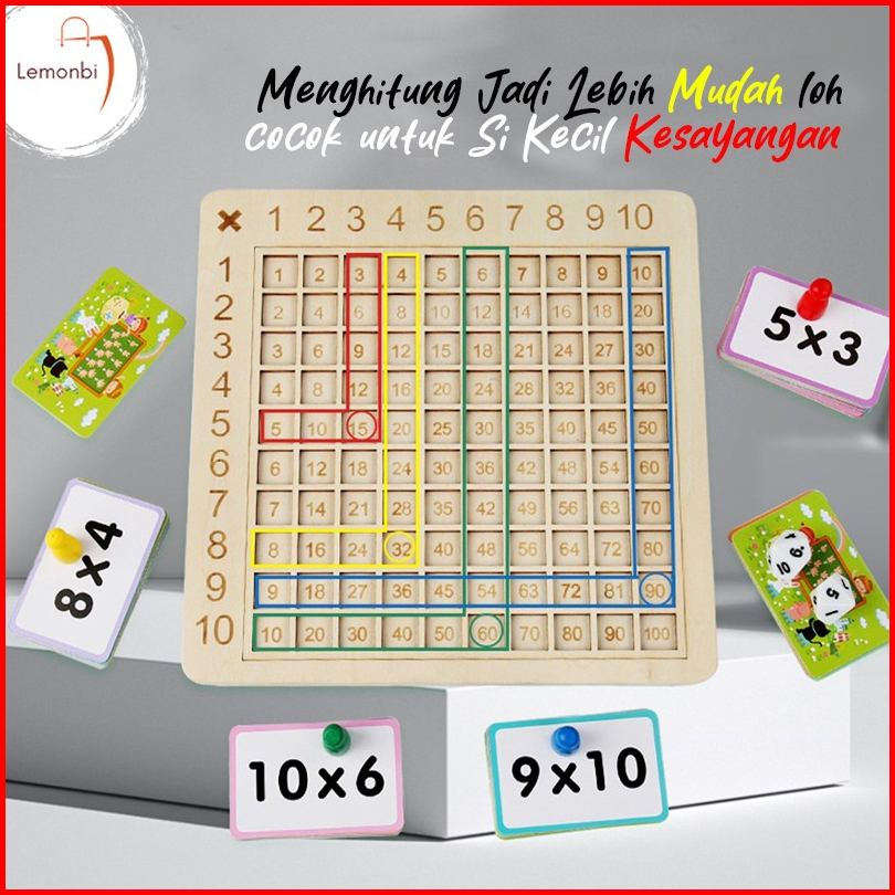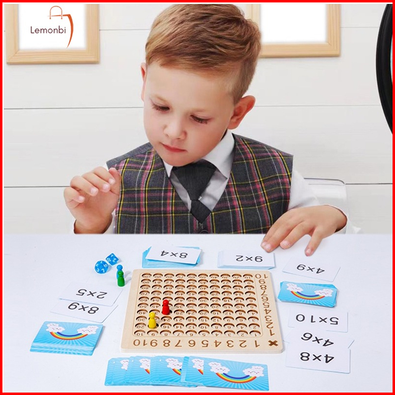 Mainan Papan Perkalian Bahan Kayu 99 Dengan Dadu Flash Card Untuk Anak Laki-laki Perempuan