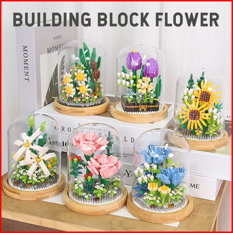 Loztoys Diy Blok Flowers Mainan Balok Bangunan Buket Bunga Immortal Kotak Tampilan Untuk Dekorasi Hadian Flower Block