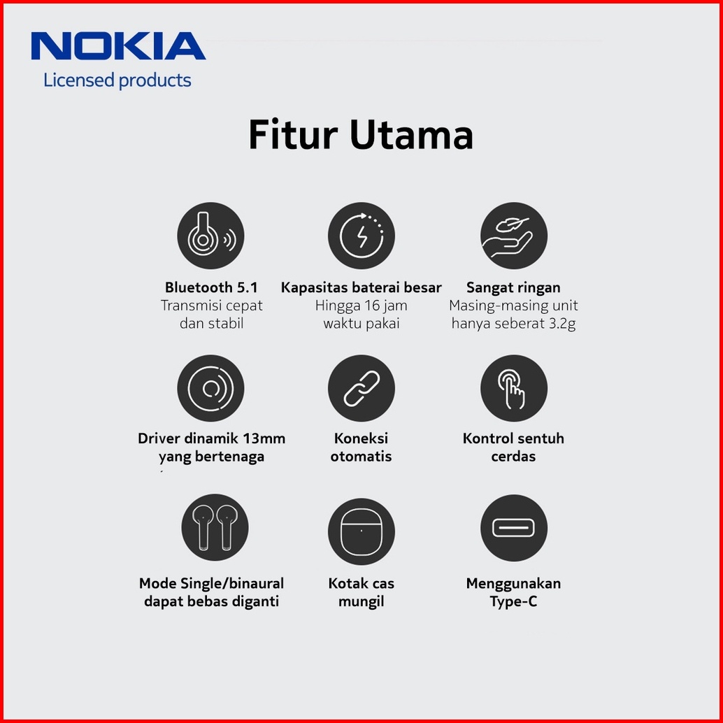 Nokia E3110 True Wireless Earbuds Bluetooth Earphone Tws Hd