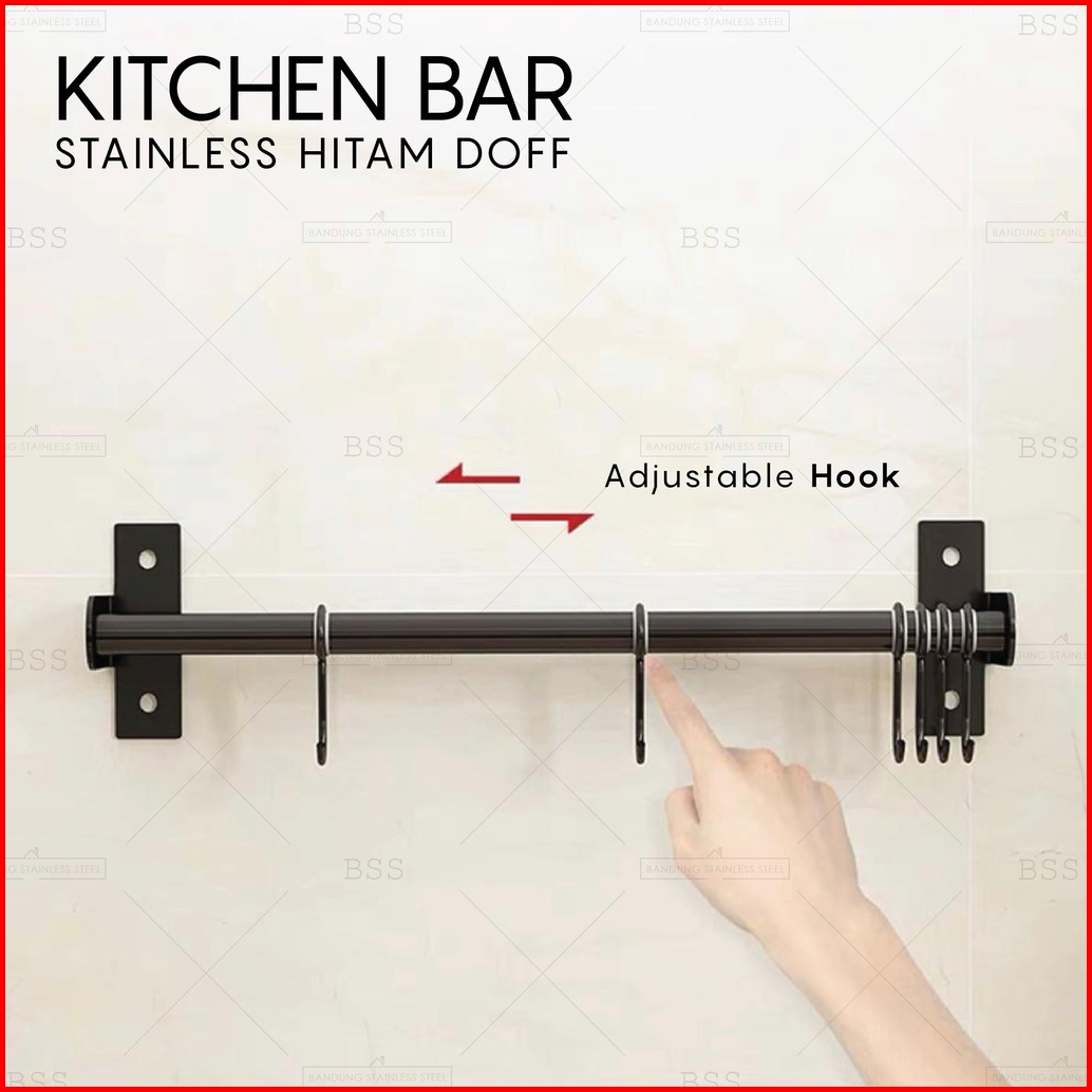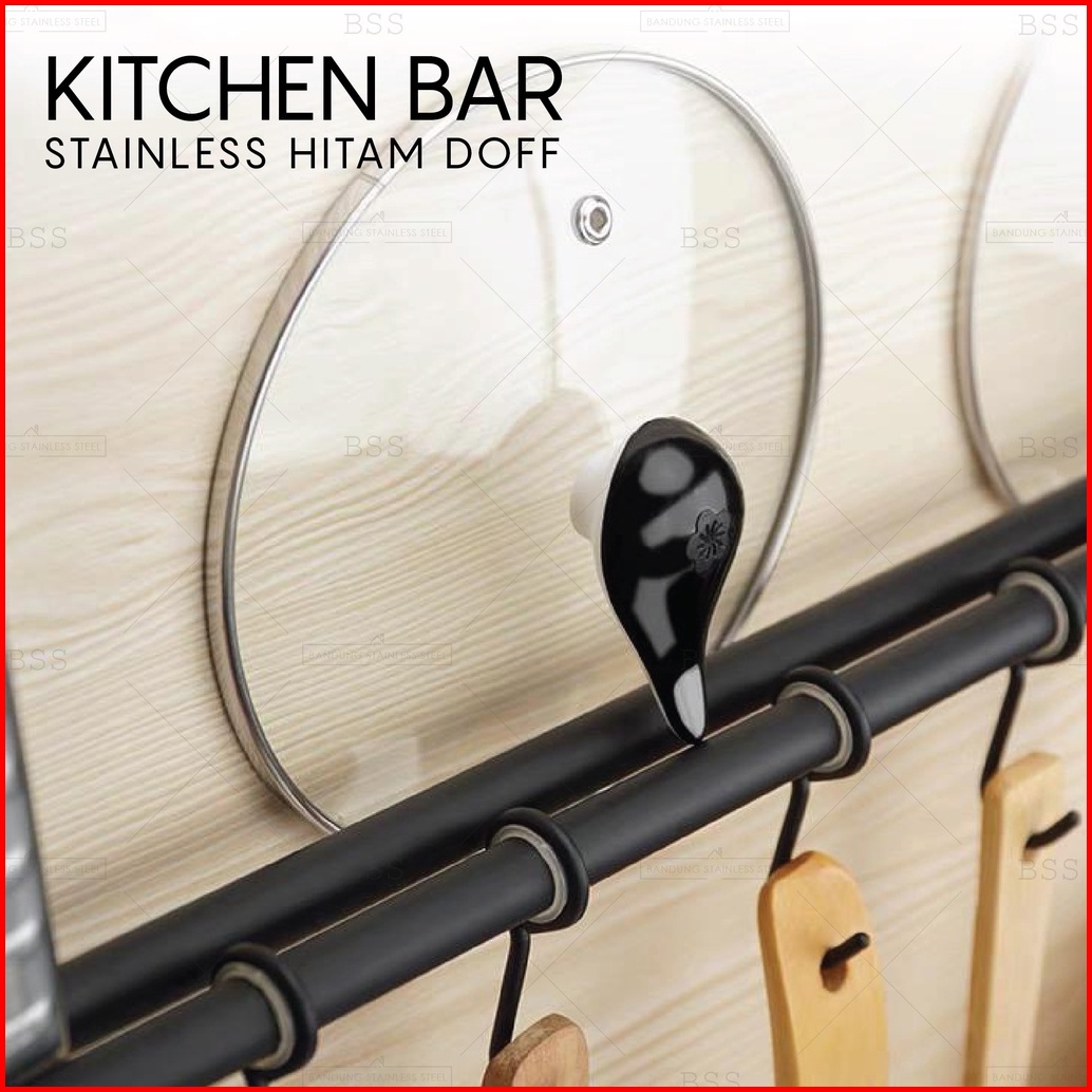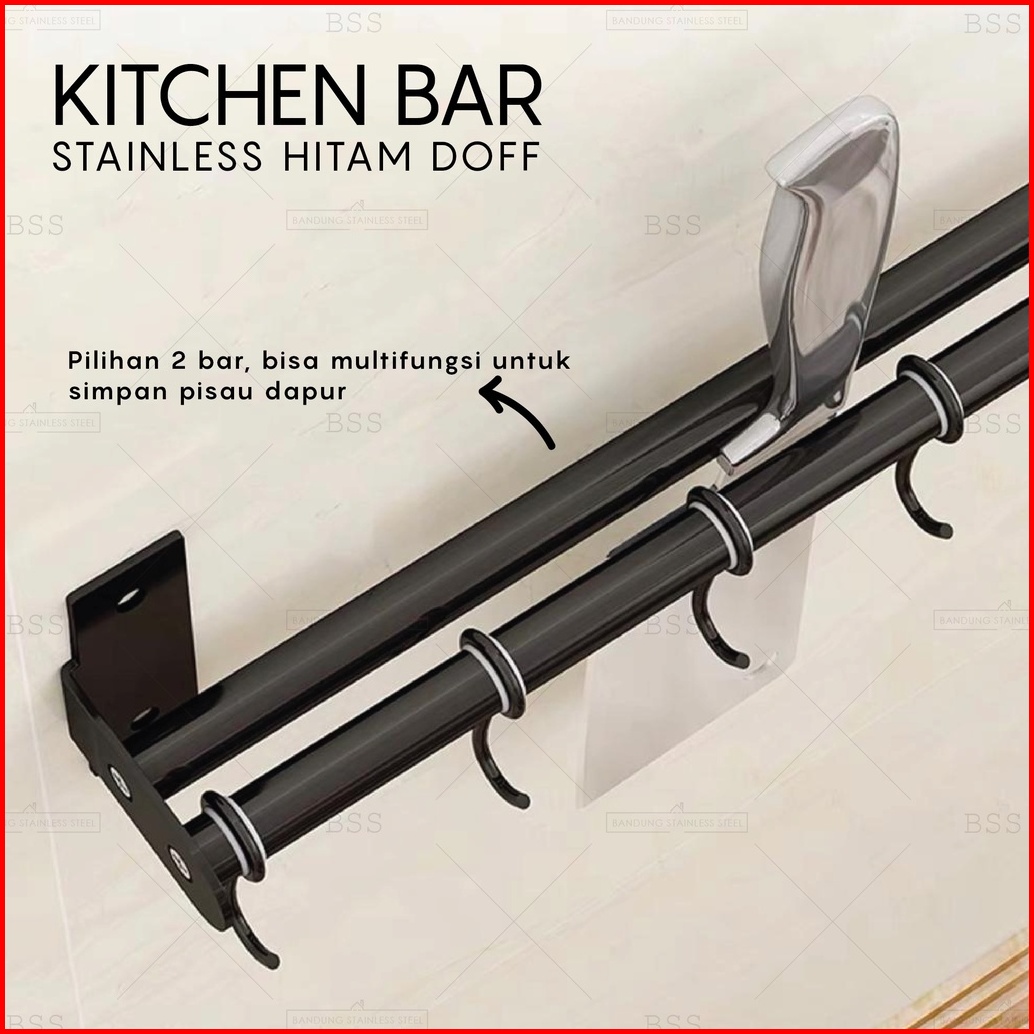Kitchen Bar Hitam Doff 60cm 80cm 100cm Single Double Gantungan Rak Dapur Pisau Panci Stainless