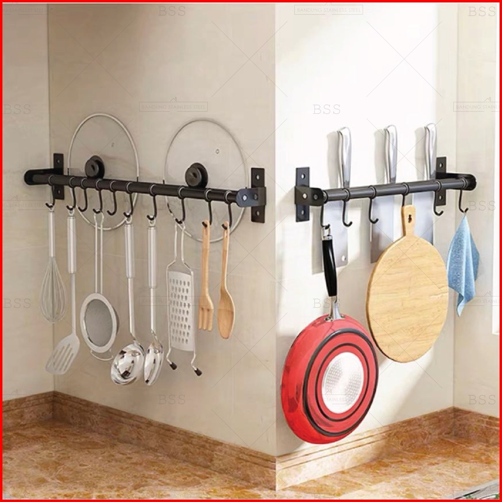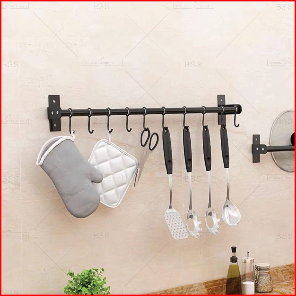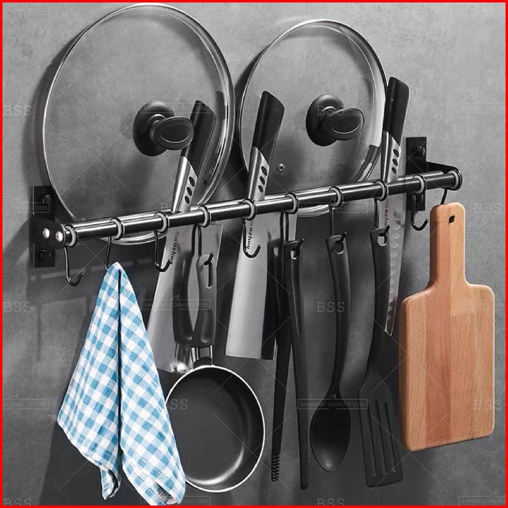 Kitchen Bar Hitam Doff 60cm 80cm 100cm Single Double Gantungan Rak Dapur Pisau Panci Stainless