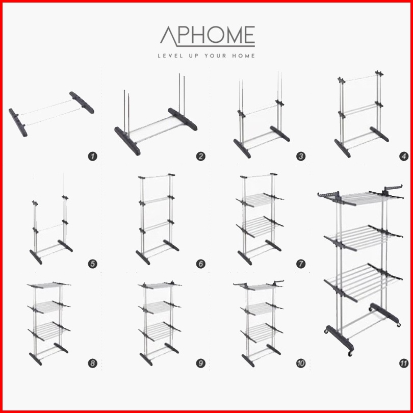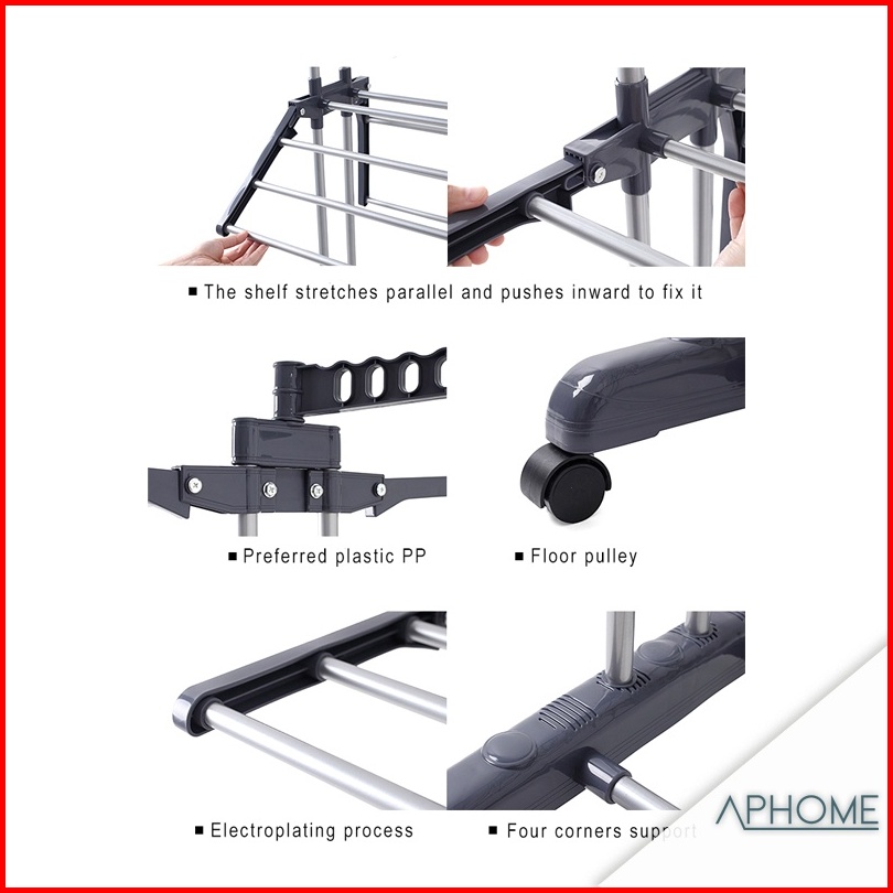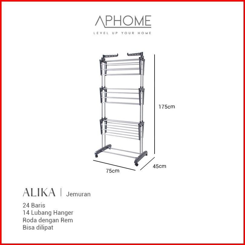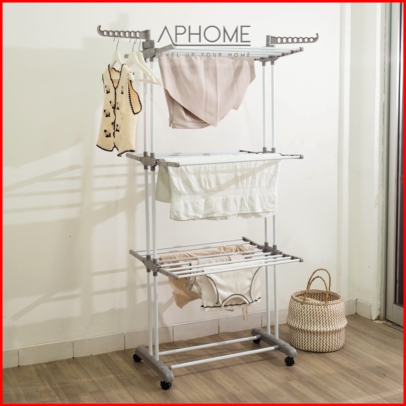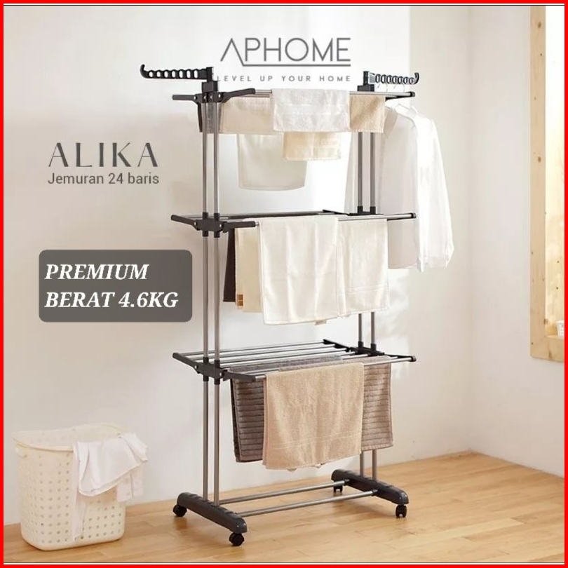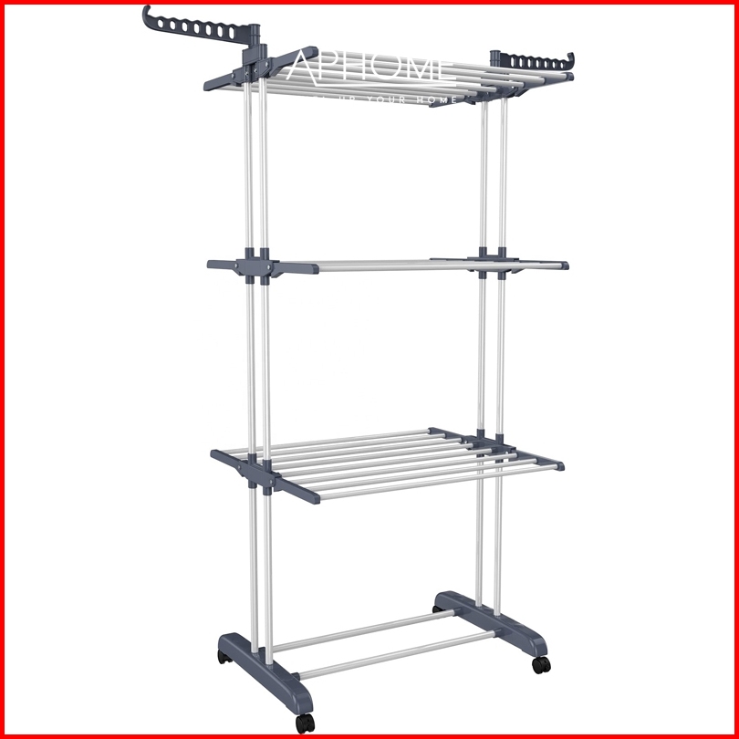 Aphome Jemuran 24 Baris 14 Slot Hanger Jemuran Handuk Baja Coating Gantungan Baju Rak Handuk Dengan Roda Alika
