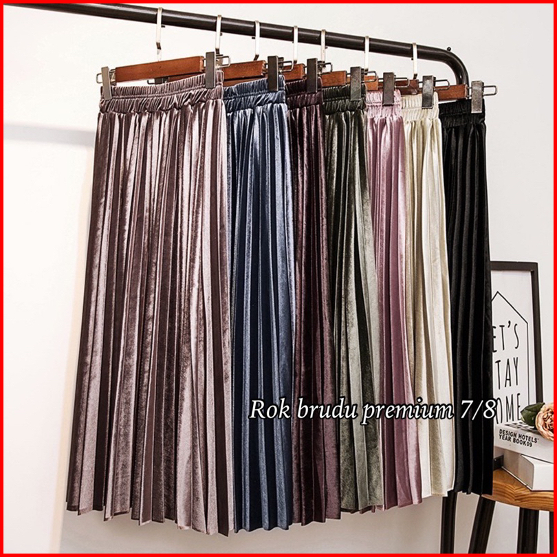 Rok Plisket Bludru Pendek 7 8 Premium Rok Velvet Beludru Premium Rok Korea