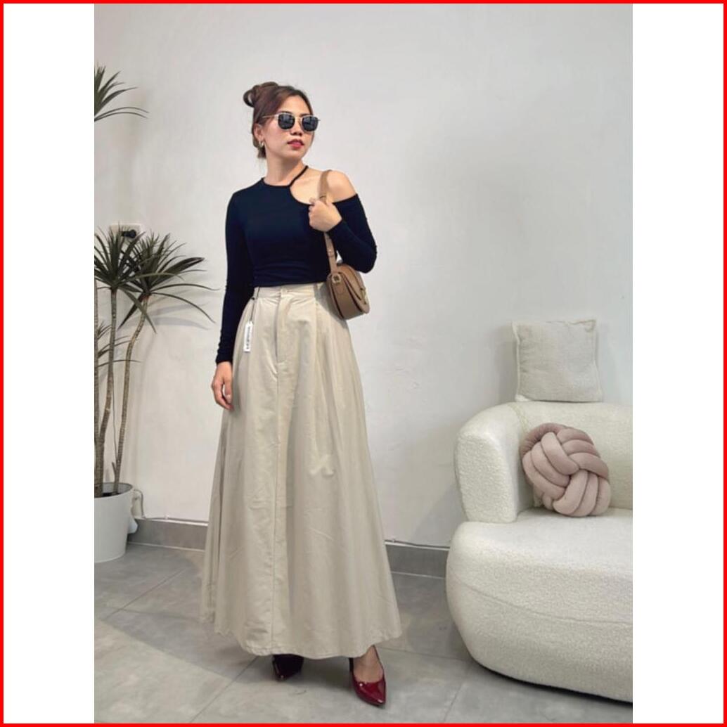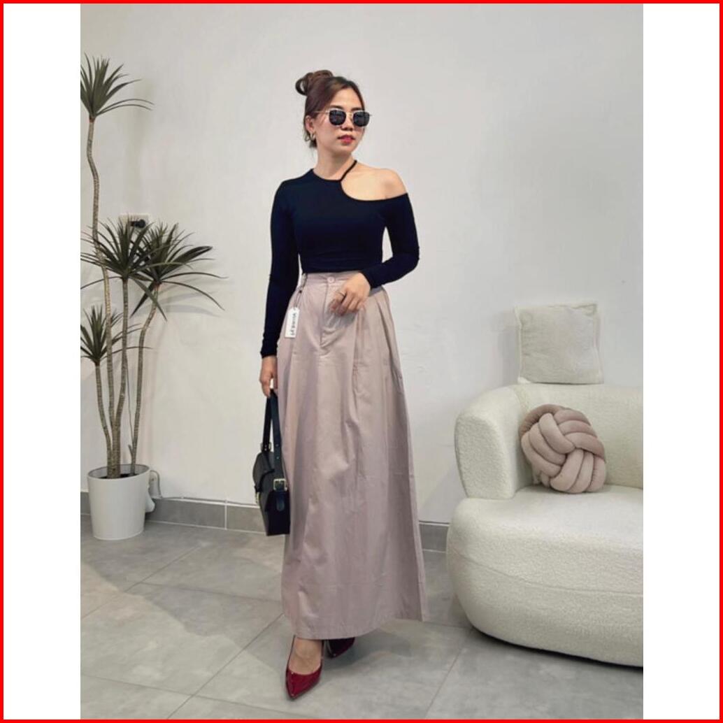 Rok Panjang Bahan Cott Twill Premium Skirt Wanita Korea Rok Kancing Wanita E.96
