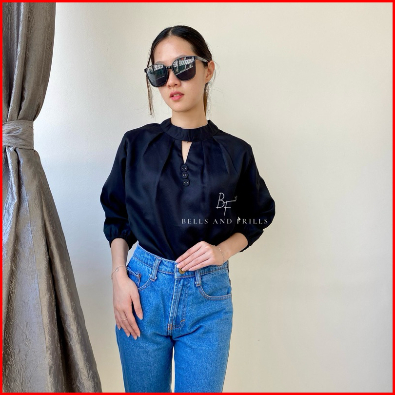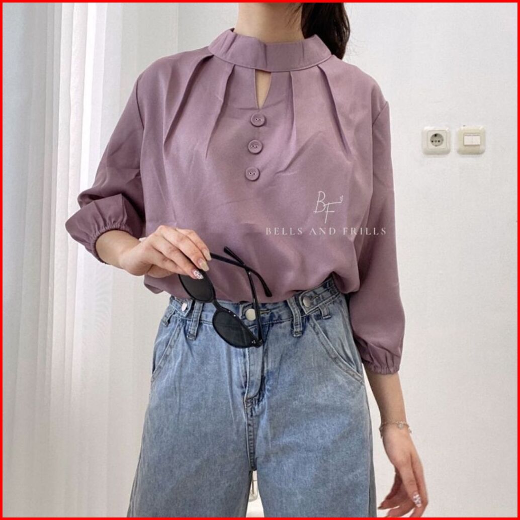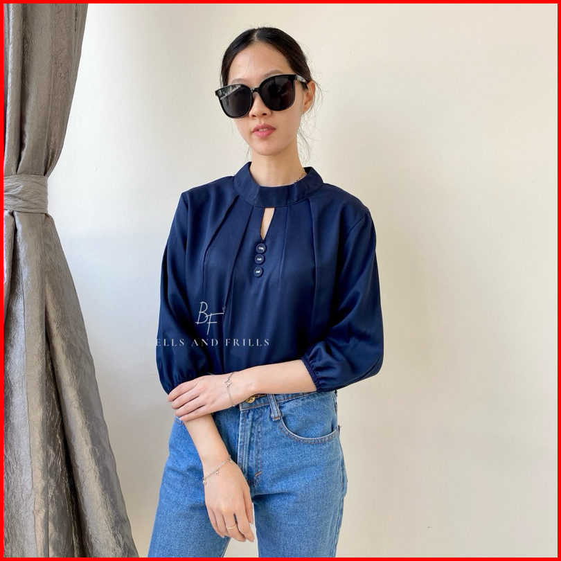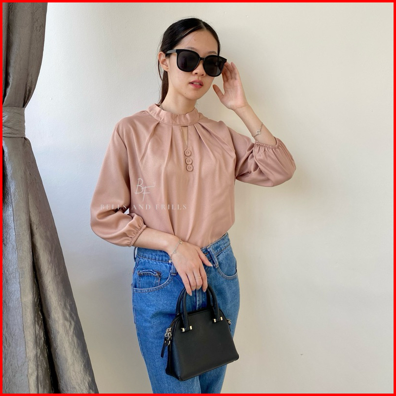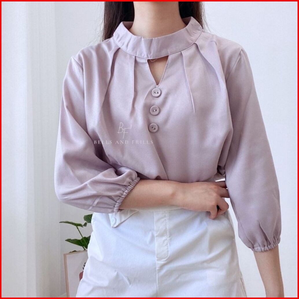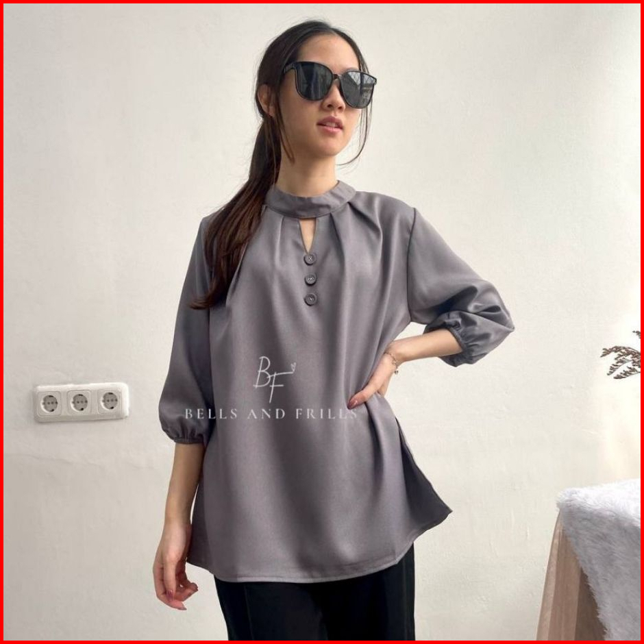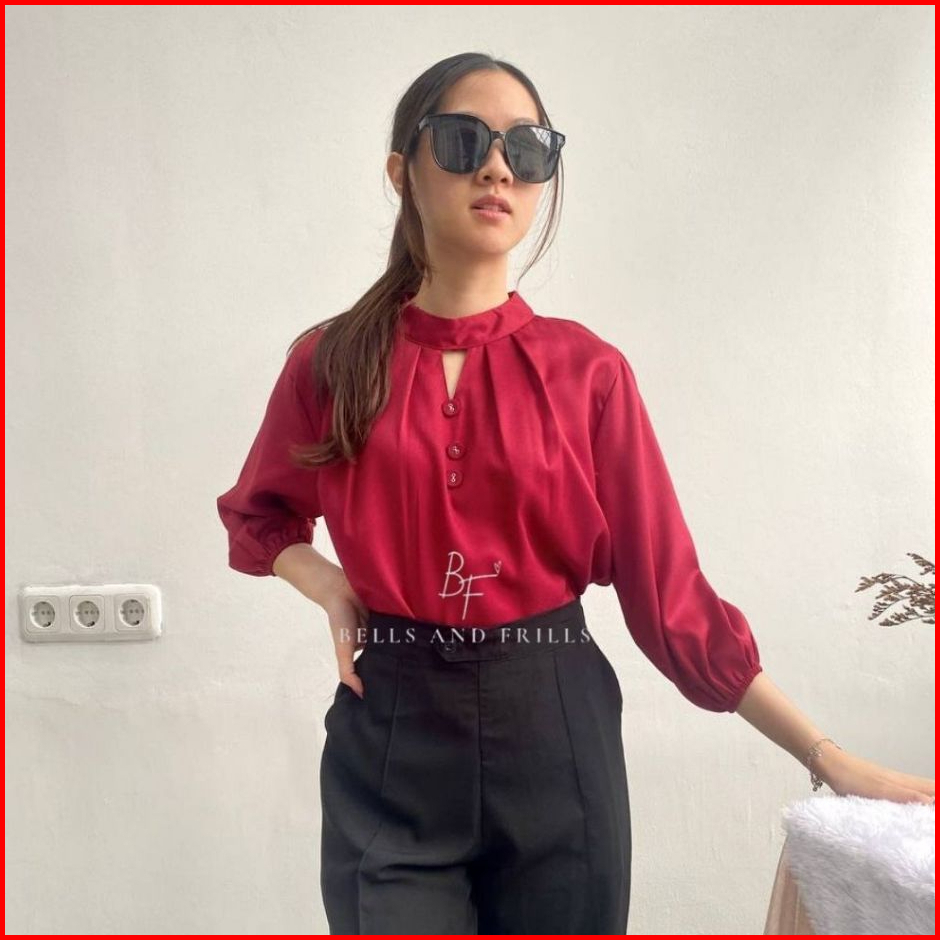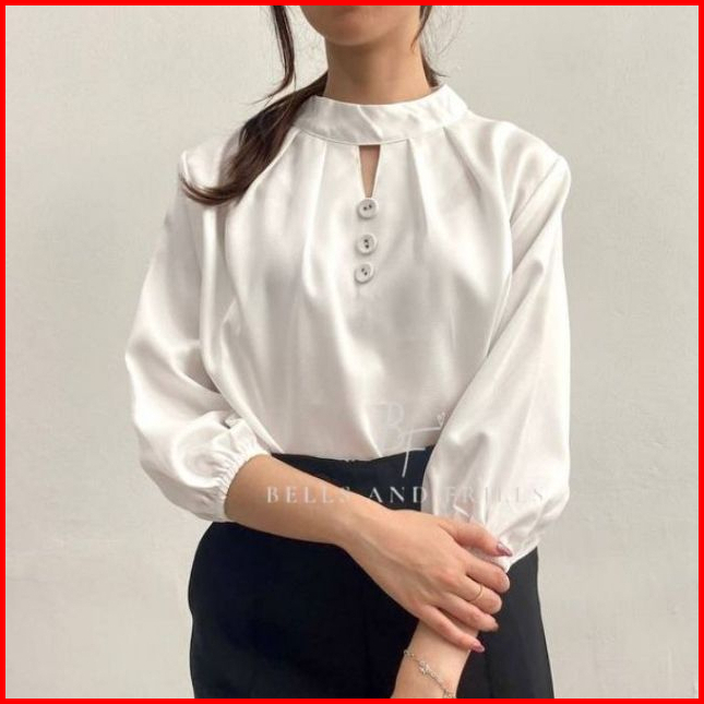 Ezran Blouse Elegant Korea Long Sleeve Atasan Hijab Wanita Baju Kantor Formal Blus Lengan Panjang Jumbo 059-218