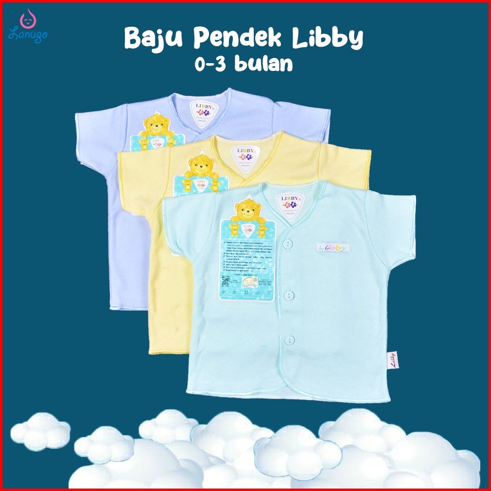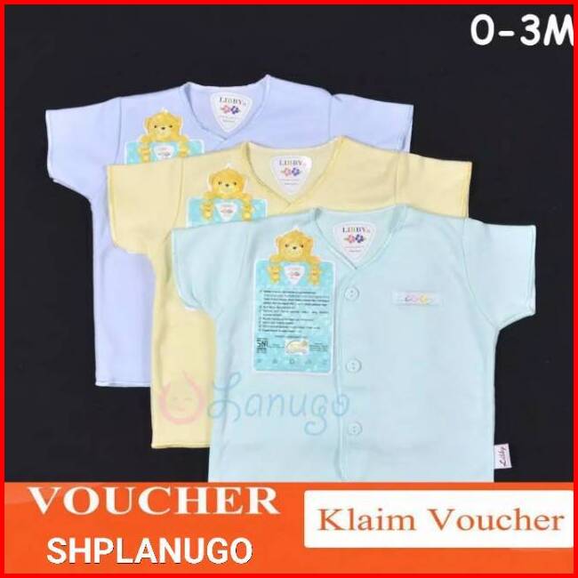 Libby 3 Pcs Baju Lengan Pendek Bayi Baby Warna Newborn 0-3m Baju Bayi Perlengkapan Bayi