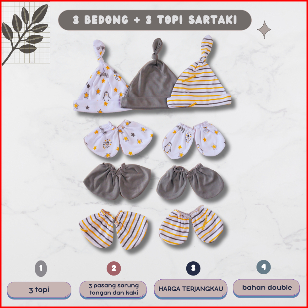 3 Set Topi Sarung Tangan Sarung Kaki Motif Sablon Terbaru
