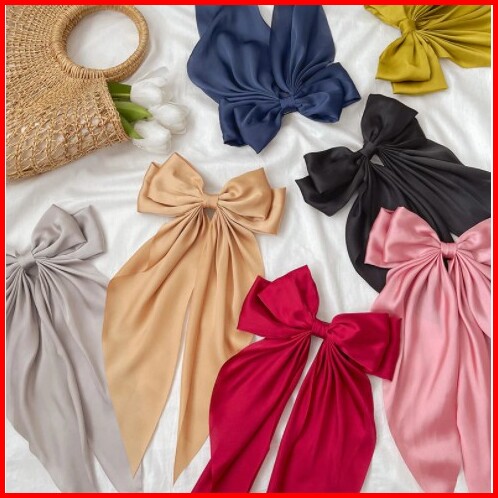 Big Large Satin Bow Hairpins Barrettes For Women Girl Wedding Long Ribbon Korean Hair Clip Hairgrip