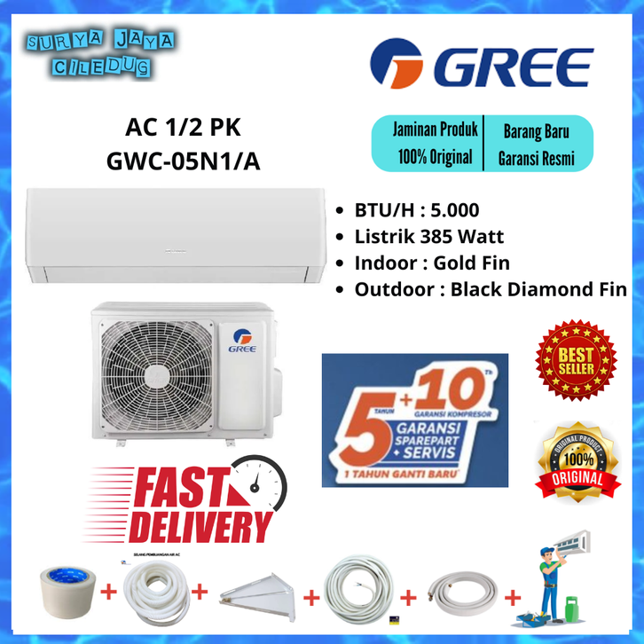 GREE AC 1/2PK GWC 05N1/A + PASANG SAMPE DINGIN - JABODETABEK