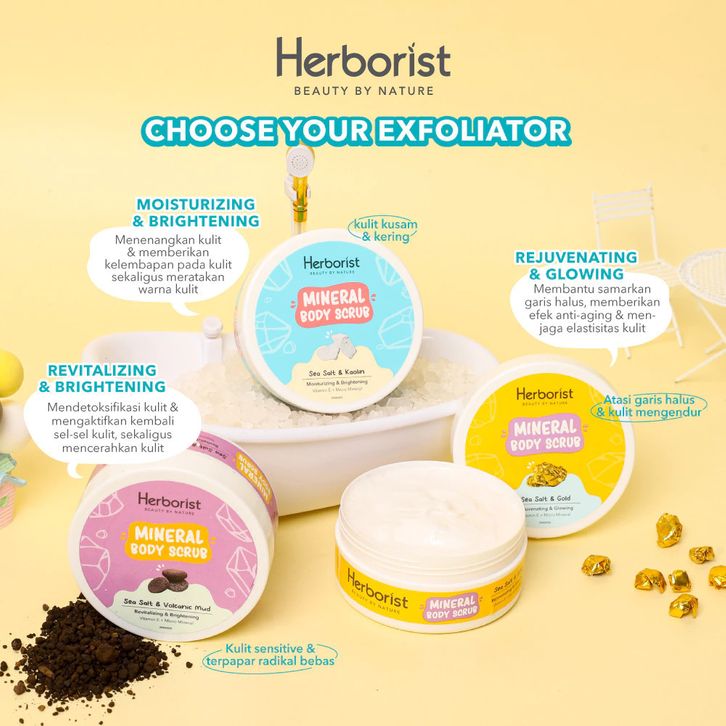 Mineral Body Scrub Herborist 200gr Mengangkat Sel Kulit Ma'ti&Menjaga Kelembapan Kulit