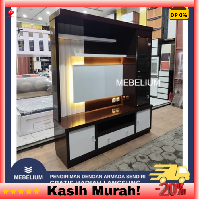 [Star] Rak Bufet TV Tinggi Lampu Kayu Solid/Lemari Pajangan TV Ruang Tamu bufet tv pajangan kayu minimalis modern