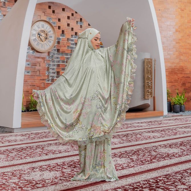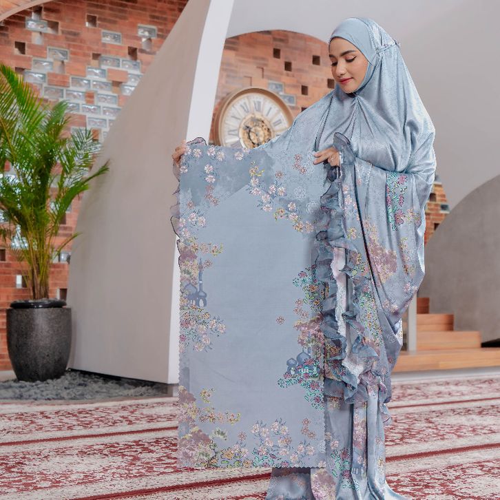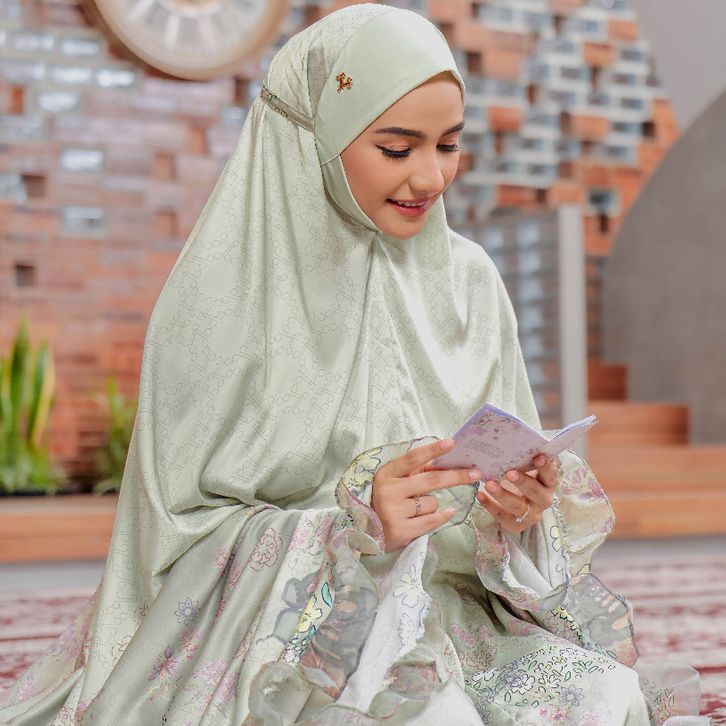 [Star] Mukena Lebaran VESELKA Luxury Garden Mukena Dewasa Syari Dagu Tertutup Motif Printing | Prayer Set Hampers Mahar