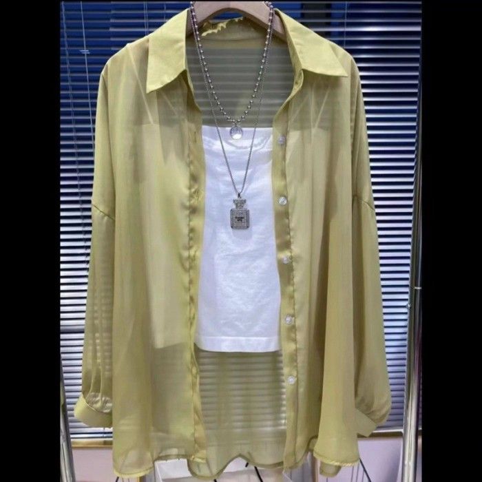 Terlariss IRIS SHIRT KEMEJA TRANSPARANT KOREAN STYLE - KEMEJA WANITA OVERSIZE - MUSTARD