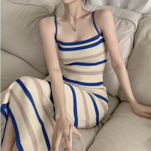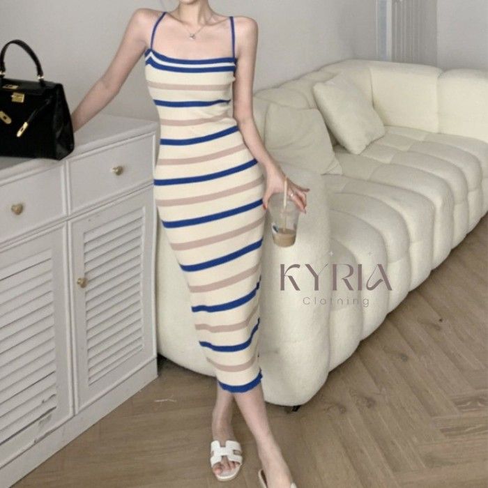 DRES WANITA KEKINIAN MURAH ELEGANT Terlariss 132 Bodycon Dress/Tanpa Lengan Salur Rajut Wanita /Bodyfit Rajut Salur