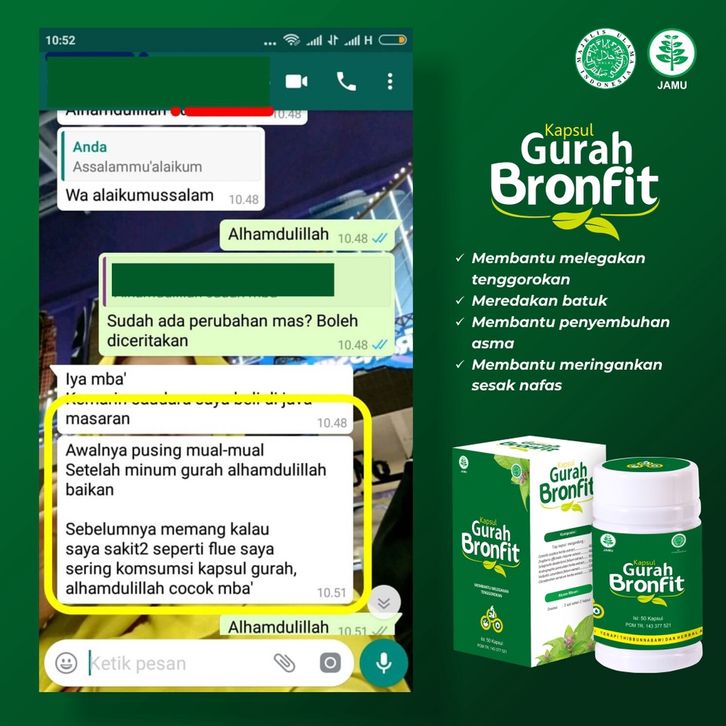 TERPERCAYA GURAH BRONFIT 30 KAPSUL OBAT HERBAL SALURAN PERNAFASAN - NATURAFIT