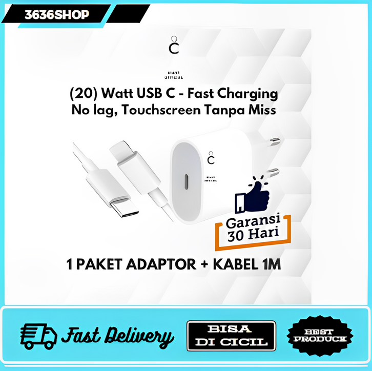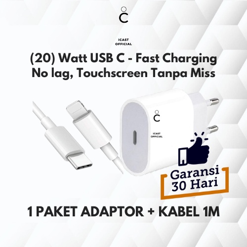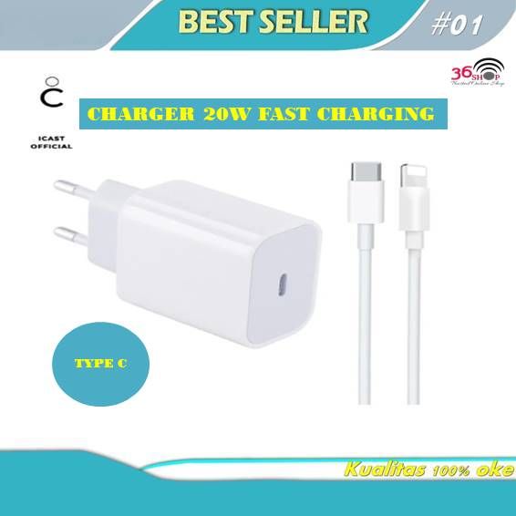 CHARGER TYPE C FAST CHARGING 20W [GARANSI 1 BULAN] - 1 PAKET CHARGER 20W + USB C KABEL 20W - ADAPTOR 20W