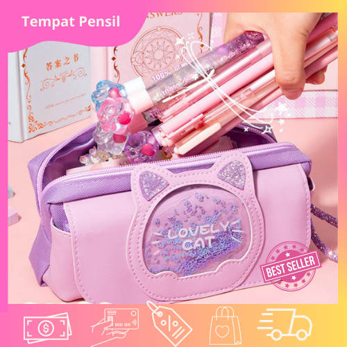 Tempat Pensil 3 Lapis Berkapasitas Besar Lovely pink ungu Kotak pensil anak perempuan multifungsi lucu viral murah