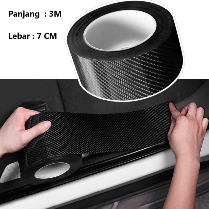 LIST CARBON 5D LEBAR 7CM X 3M |STIKER ANTI LECET LIP BUMPER SILL PLATE - HITAM