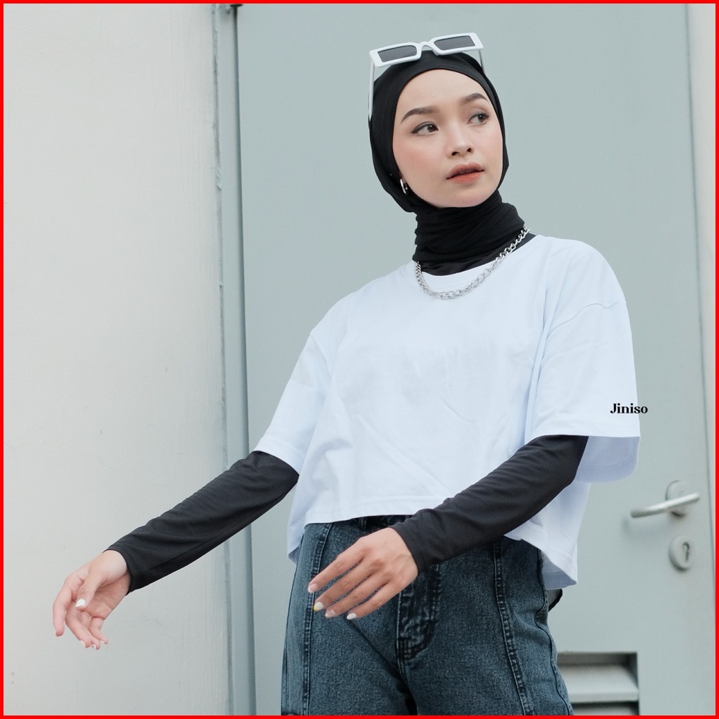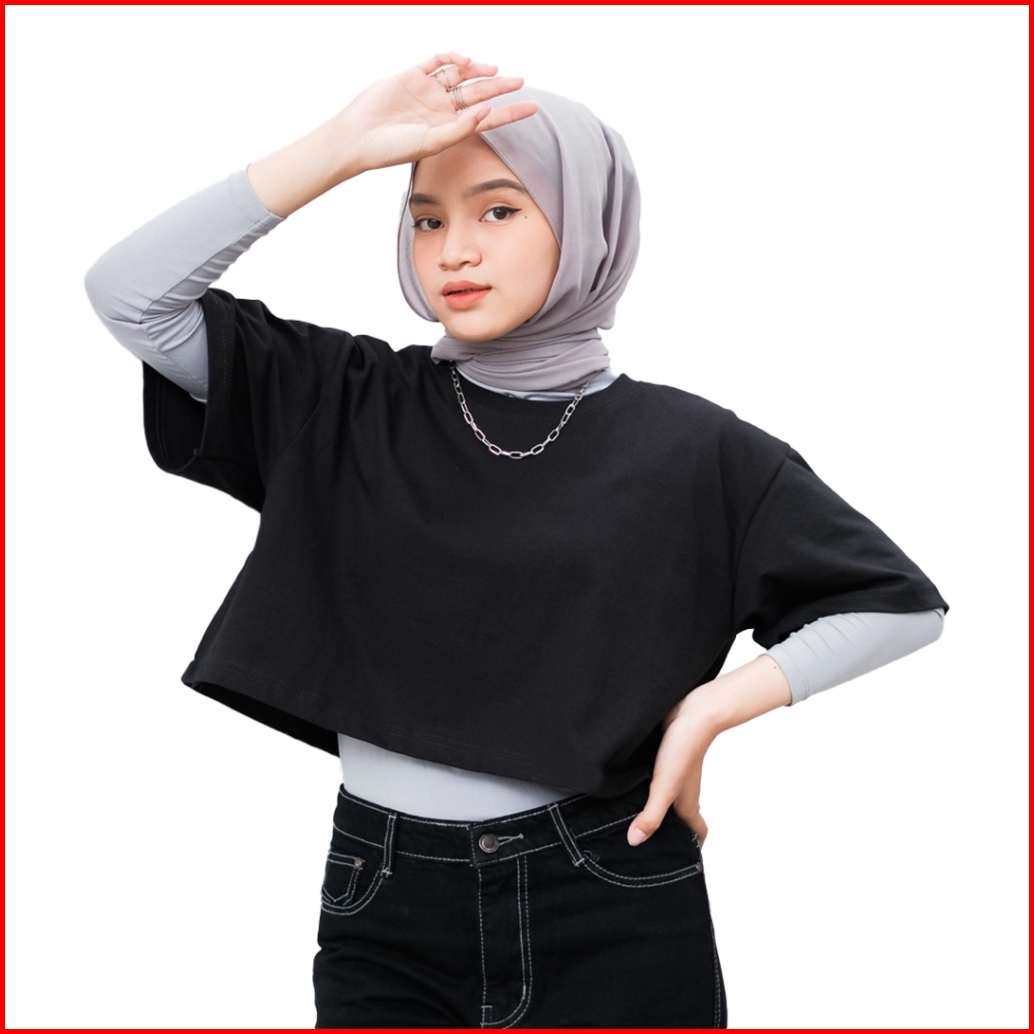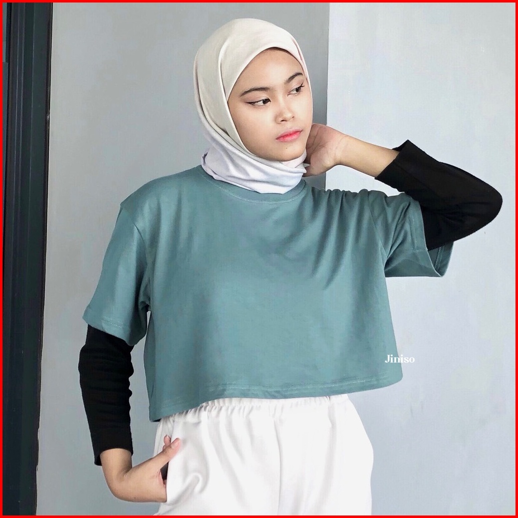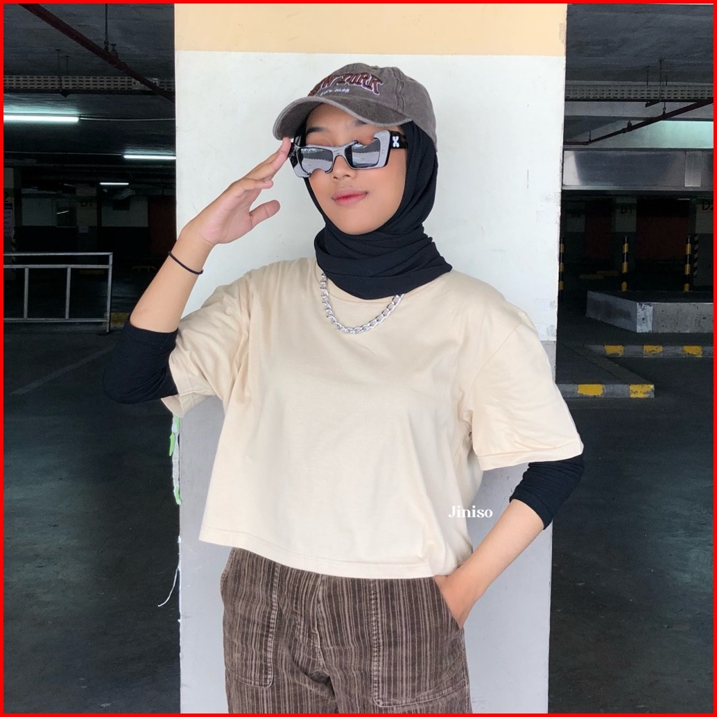 Jiniso Kaos Crop Top Oversize Basic Polos T-shirt