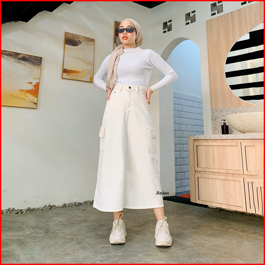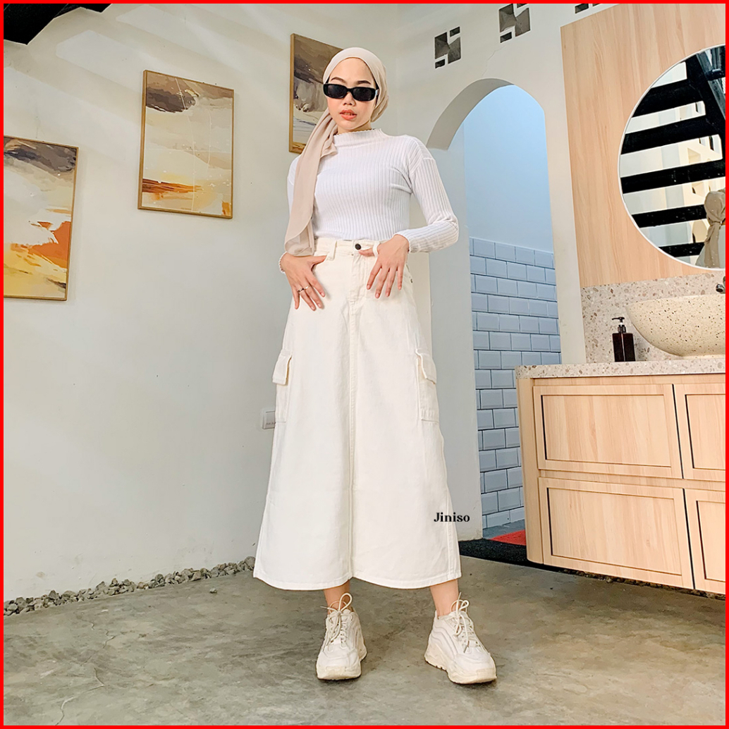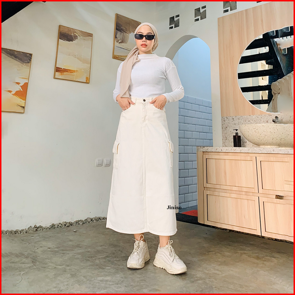 Jiniso - Highwaist Rok Cargo Jeans Panjang 984 Seventy