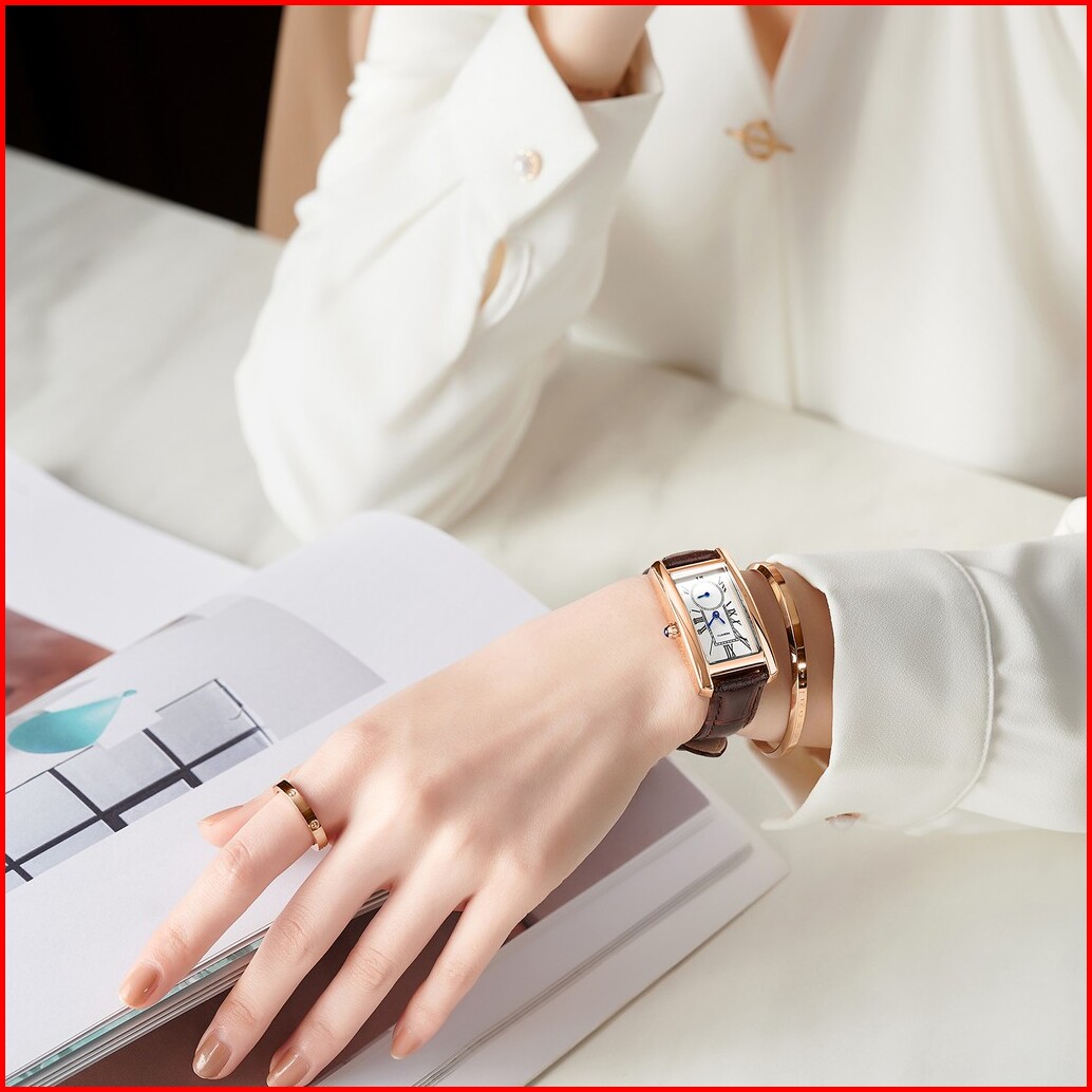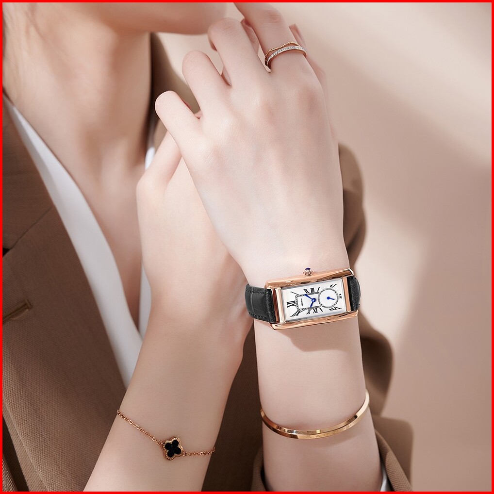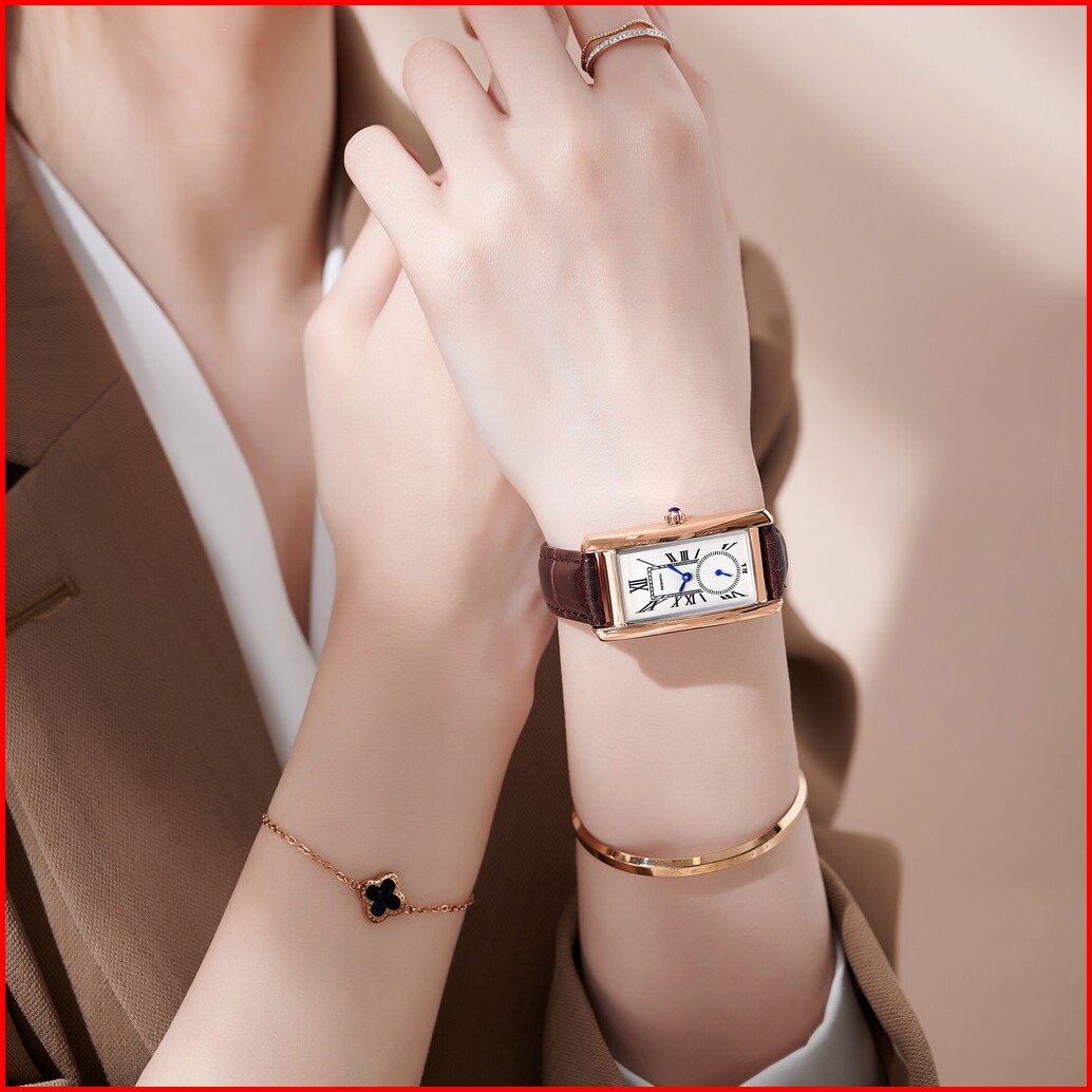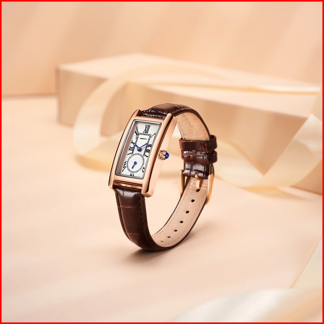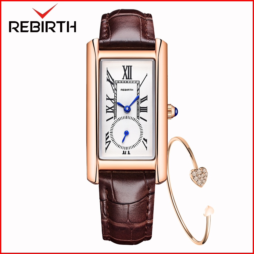 Rebirth Jam Tangan Wanita Original Retro Santai Square Dial Tali Kulit Anti Air Kuarsa Jam Tangan Cewek
