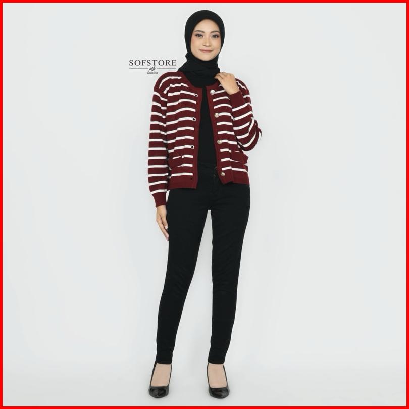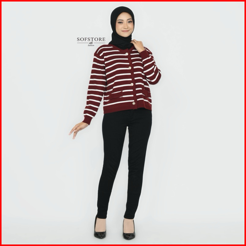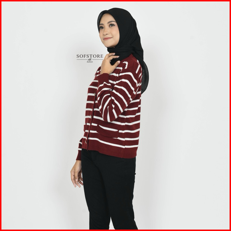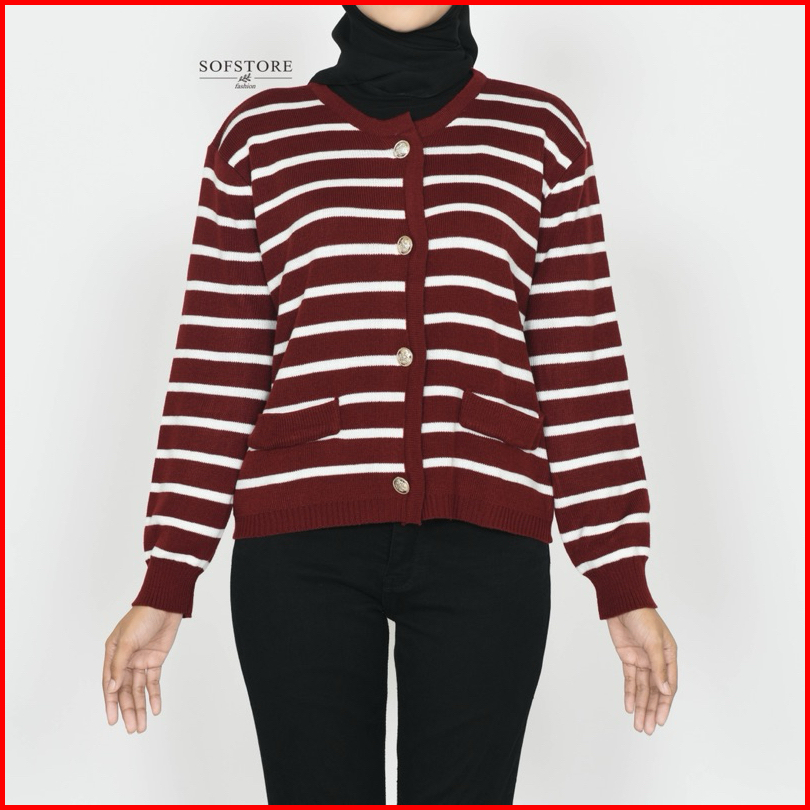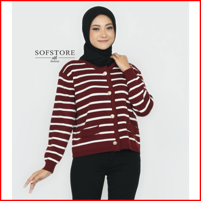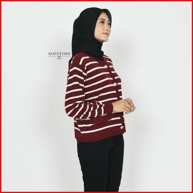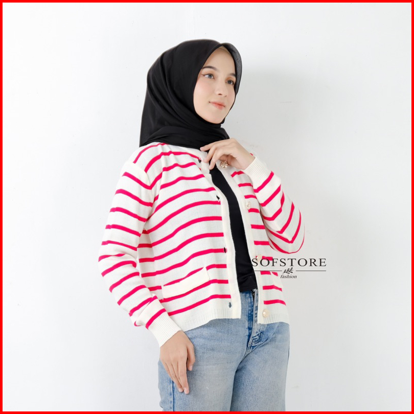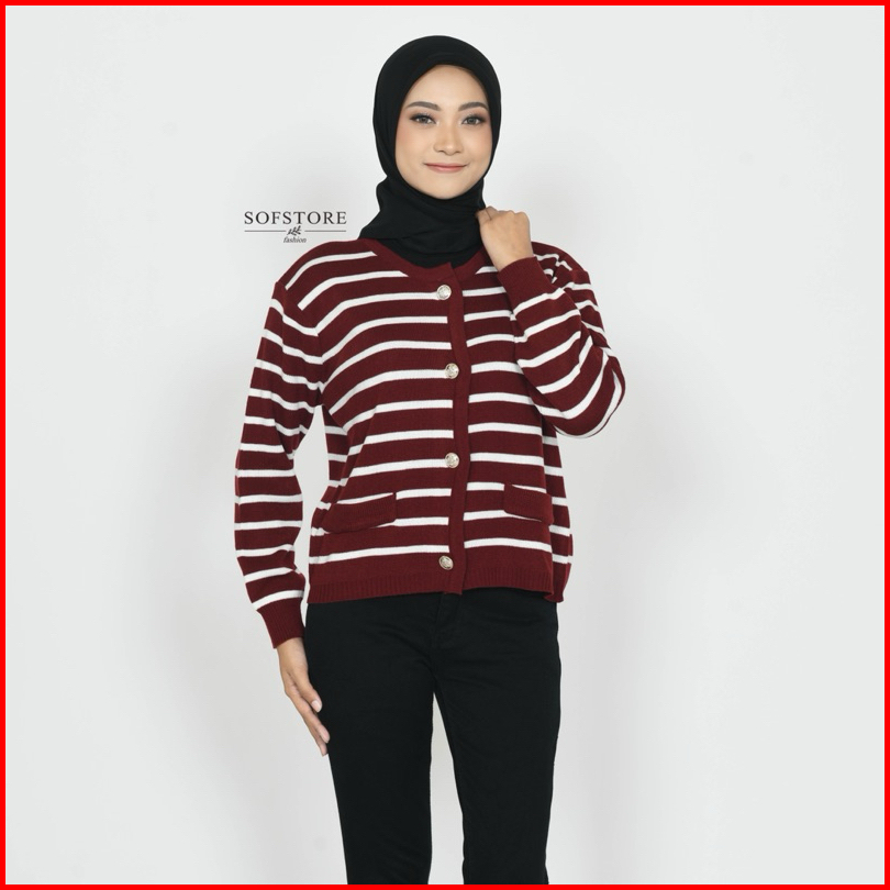 Lessy Knit Cardy Rajut Premium Korean Fashion Knitwear Atasan Wanita Stripe
