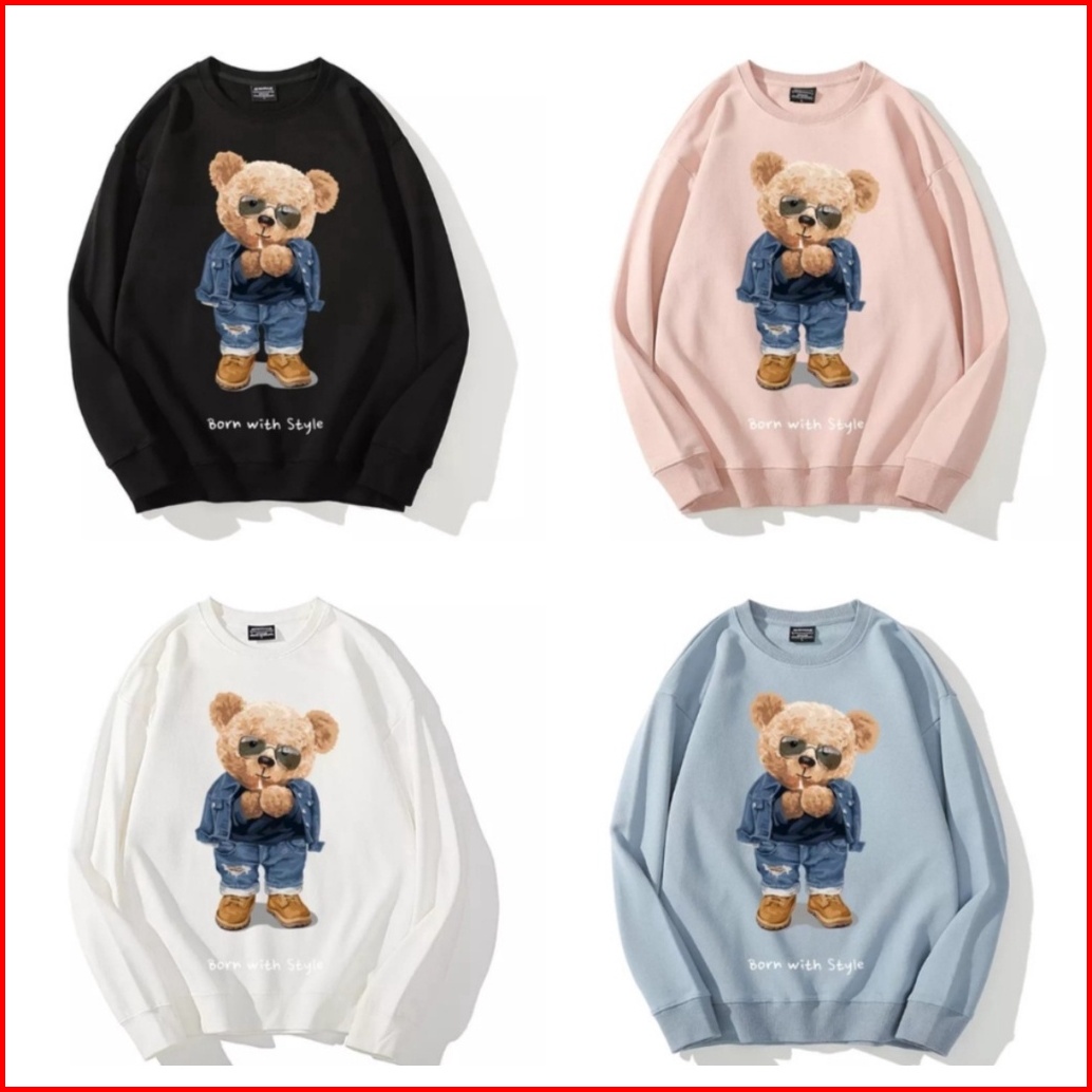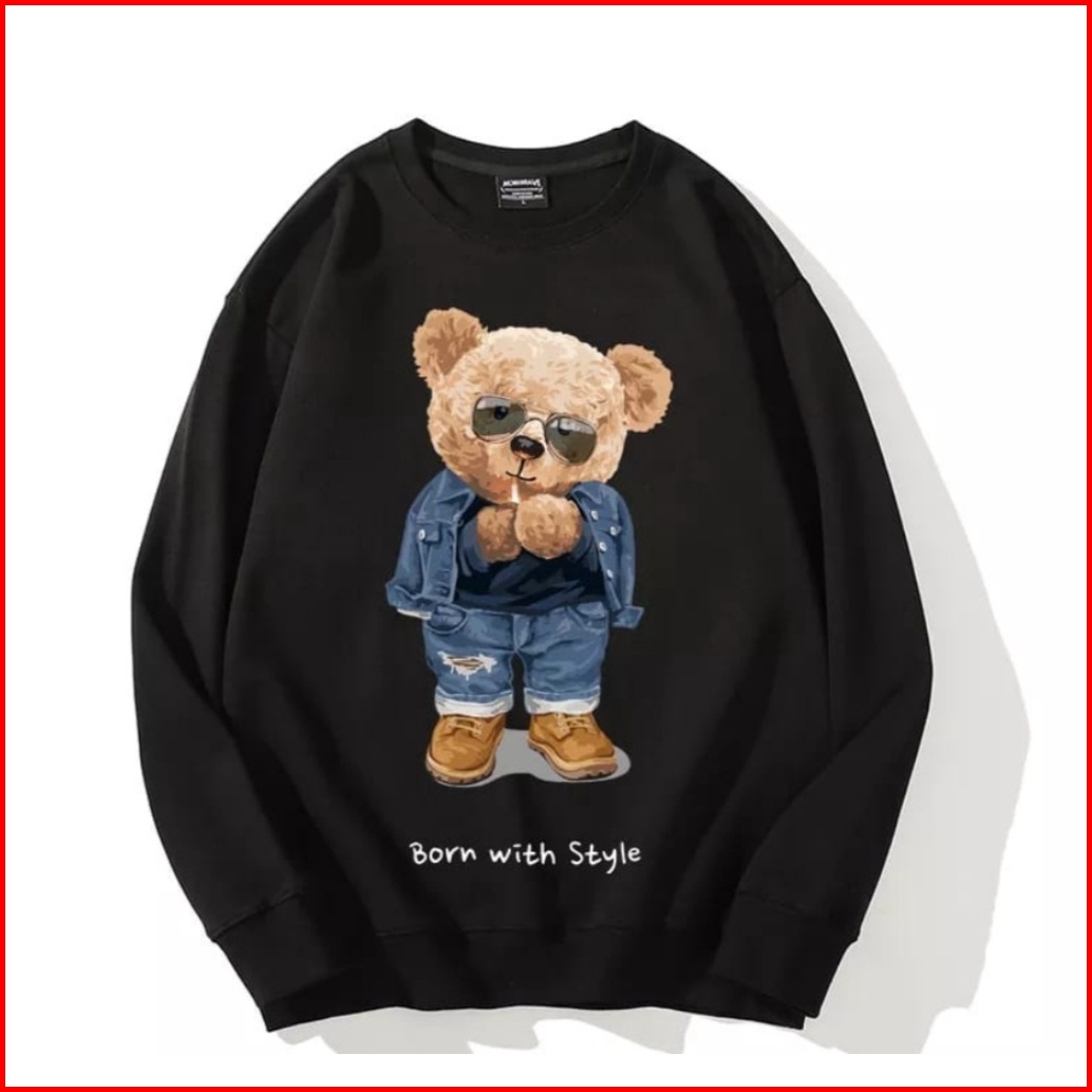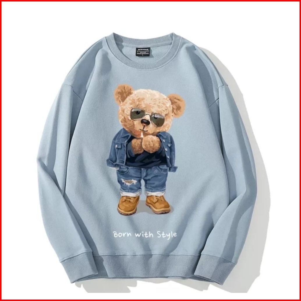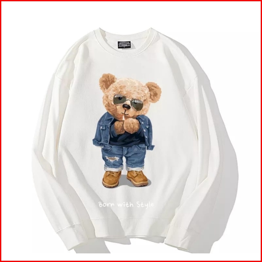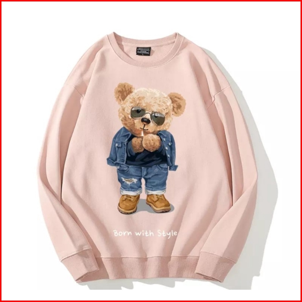 Born With Style Teddy Bear Sweater Oversize Crewneck Pria Wanita