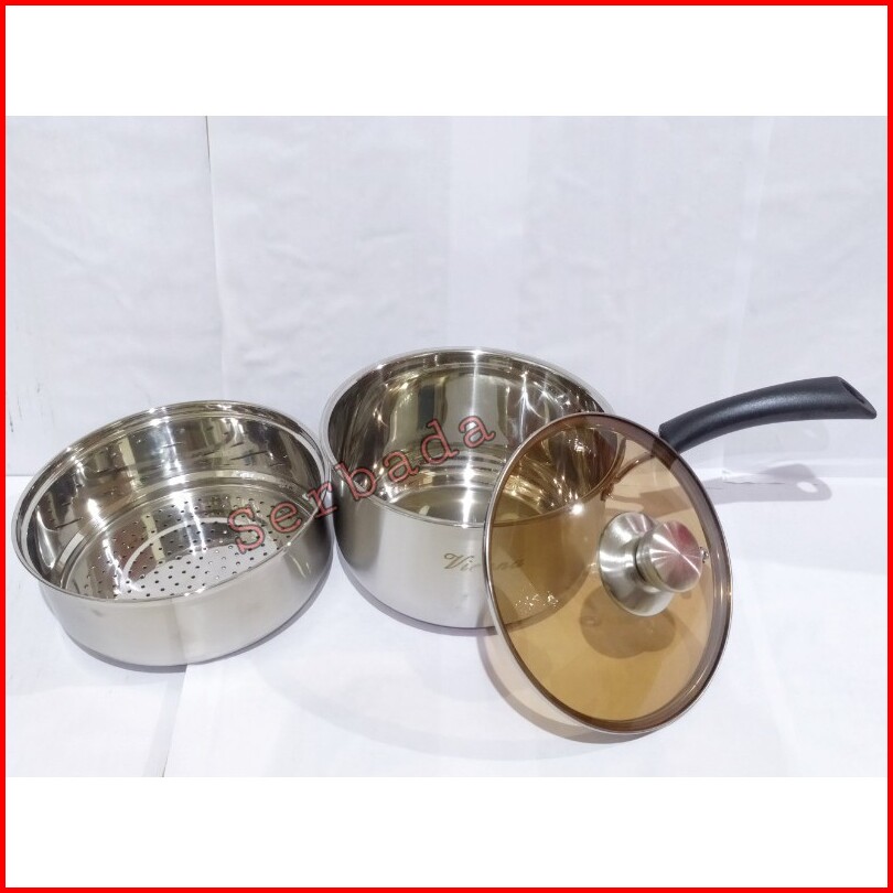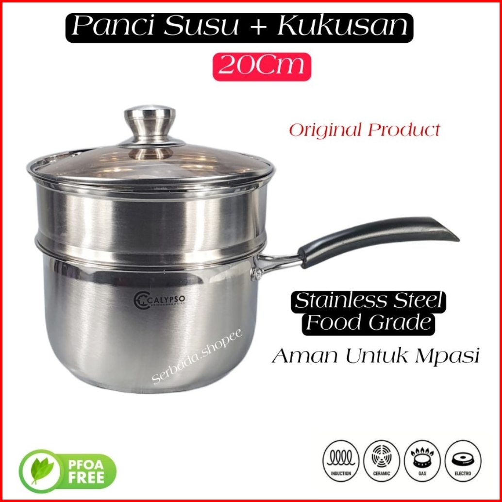 A1 Dandang Steamer 20cm Panci Kukus Kecil Susun Stainless Tebal Tutup Kaca Calypso Milkpan Kukusan