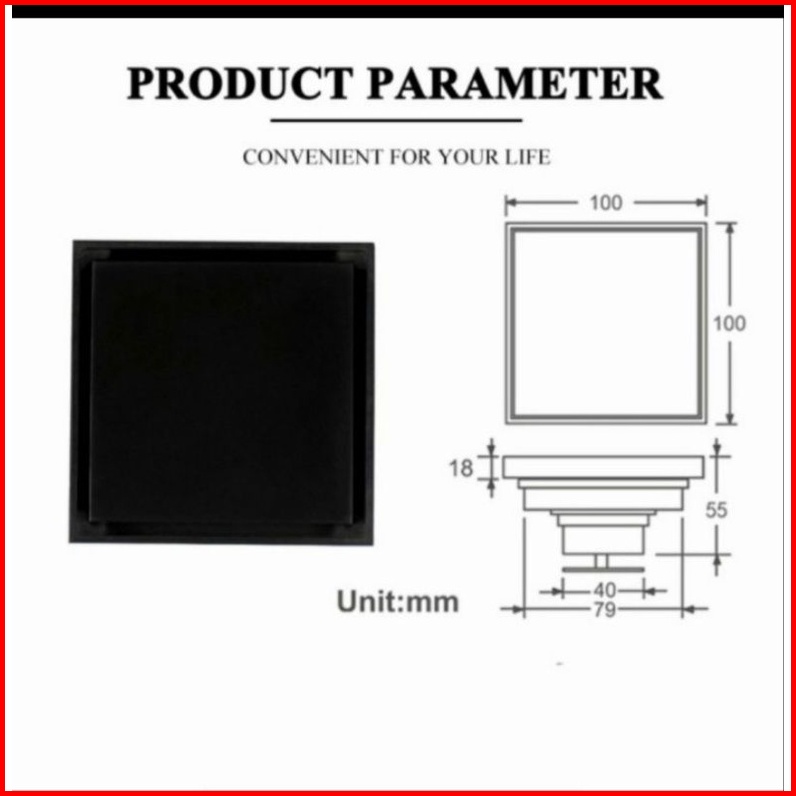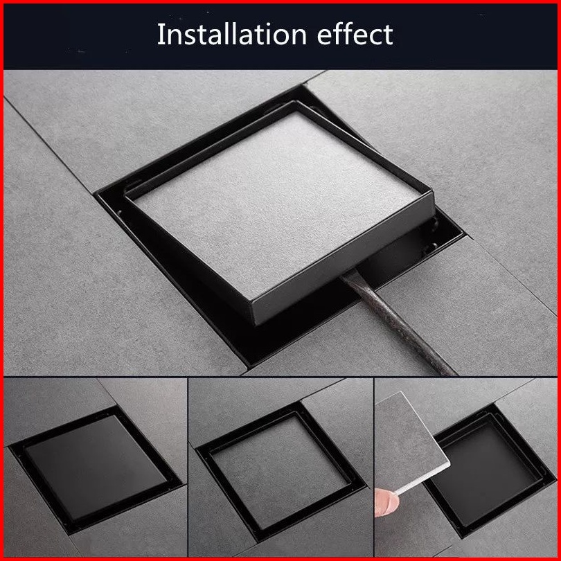 Smart Floor Drain Stainless Sus 304 Black Hitam Saringan Got Anti Banjir Dan Serangga T92 Tile Insert Keramik