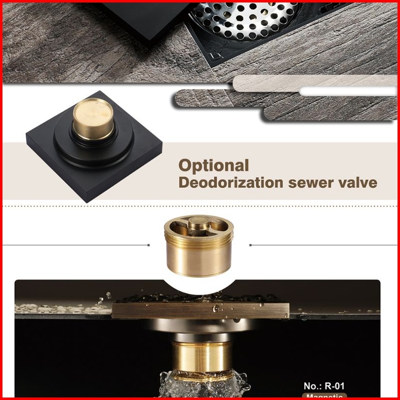 Floor Drain Stainless Sus 304 Anti Bau Serangga Anti Banjir Black Dan Chrome Katup Kuningan Saringan Got