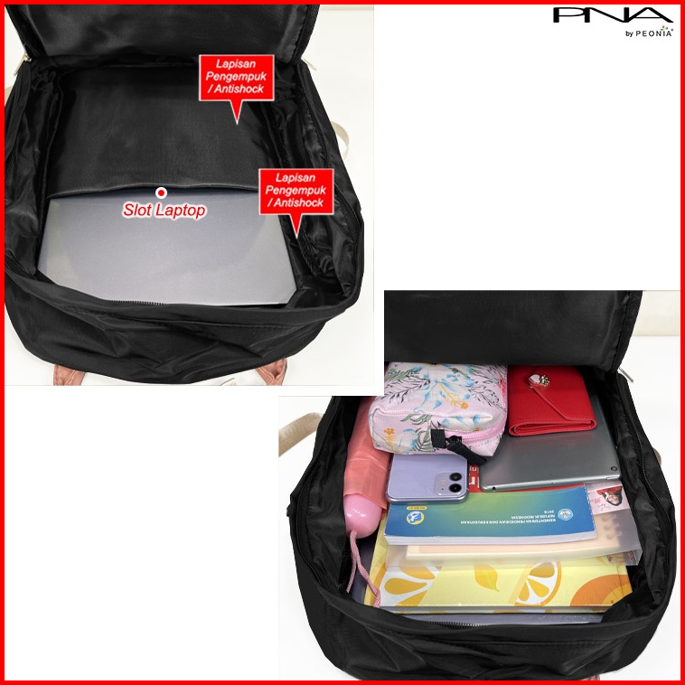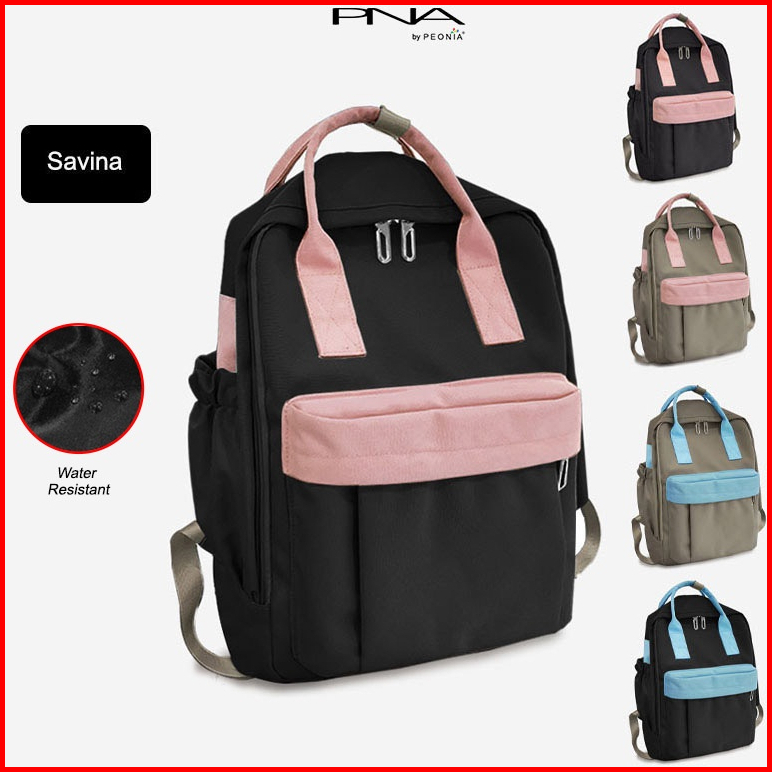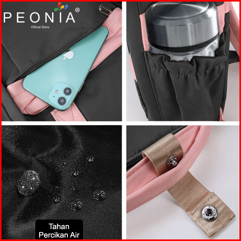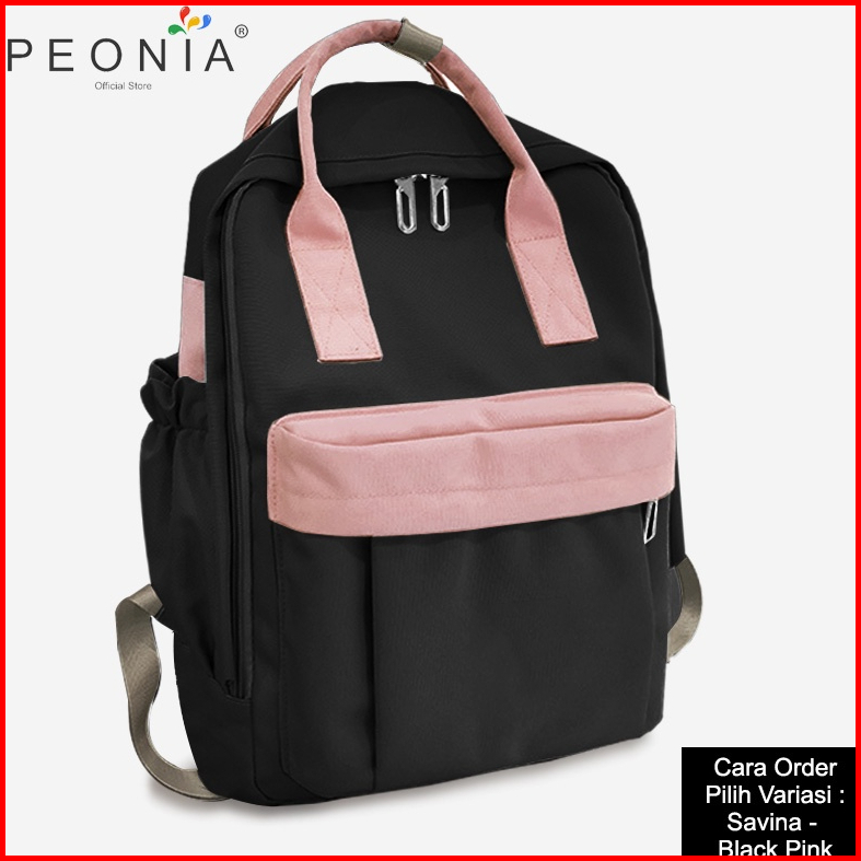 Peonia Pna Savina Water Resistant Tas Ransel Wanita Import Korean Style Besar Unisex Laptop Backpack Punggung Kantor Ker