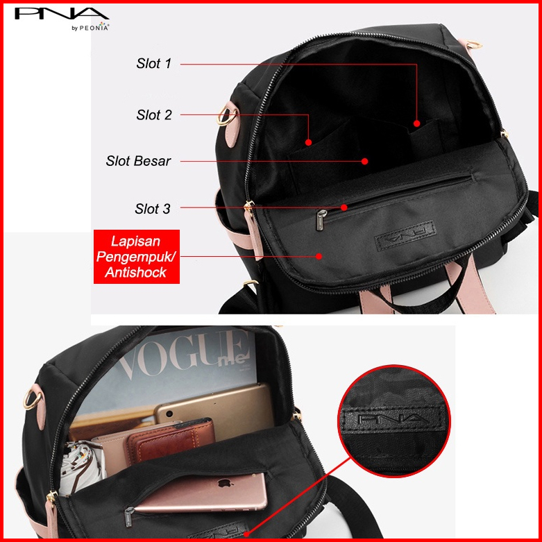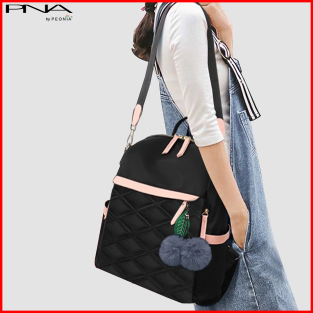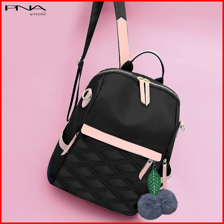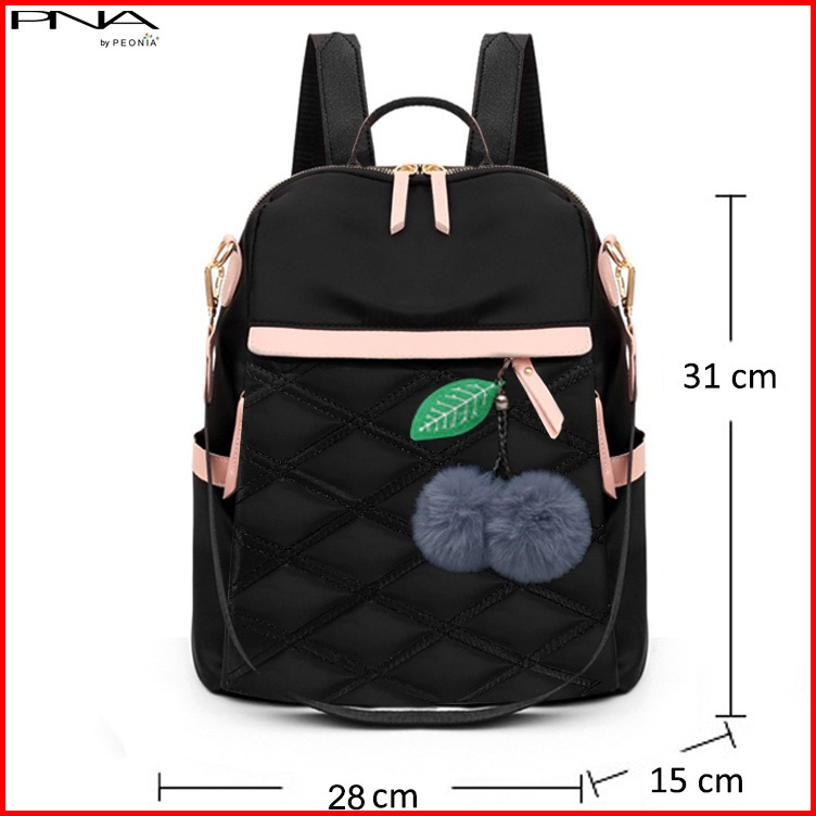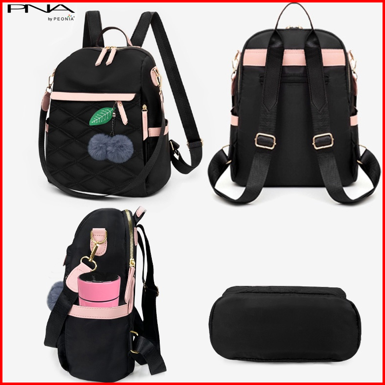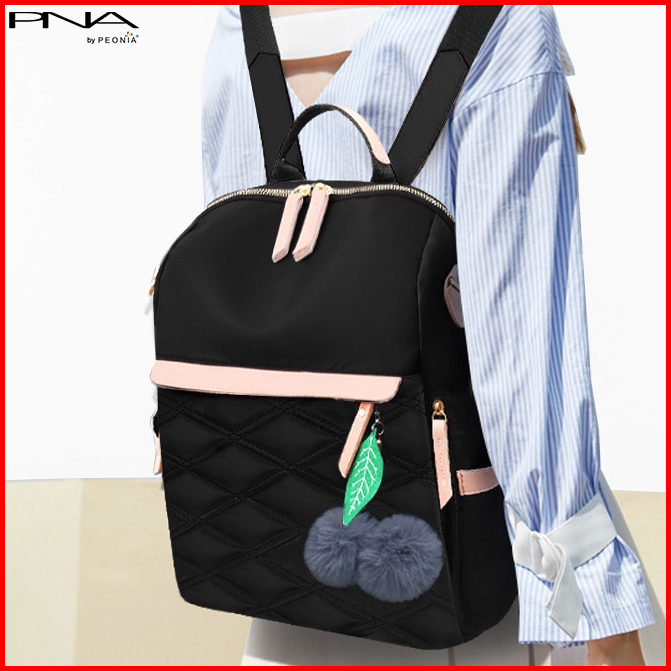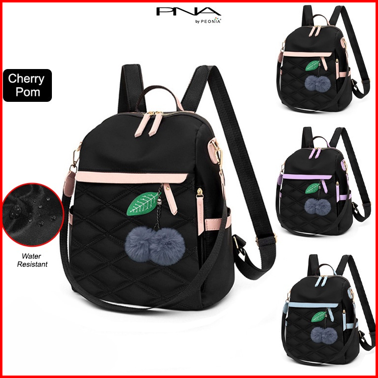Peonia Pna Cherry Pom Water Resistant Tas Ransel Wanita Import Korea Style Punggung Kantor Kerja Sekolah Kuliah Outdoor