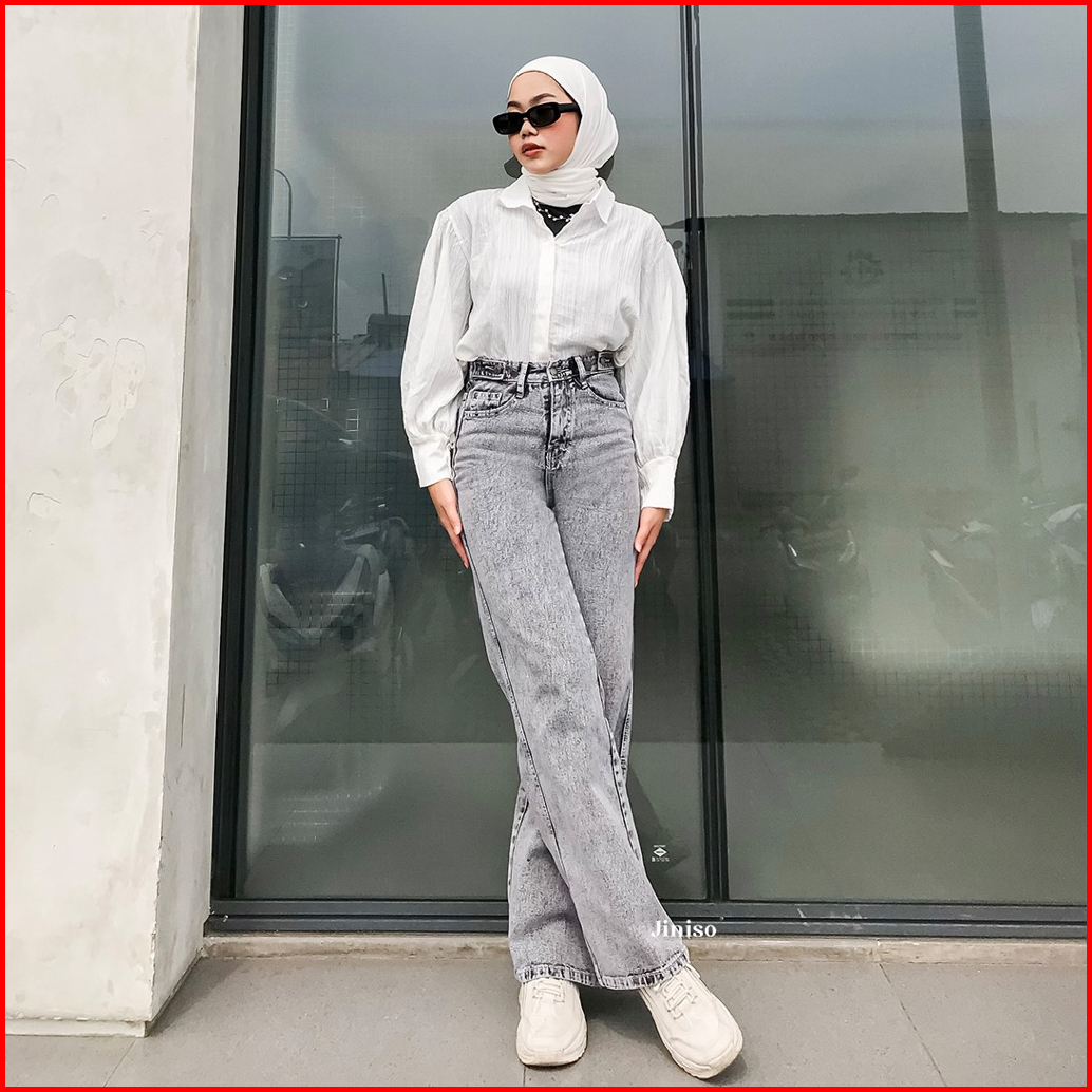 Jiniso - Highwaist Adjustable Baggy Under Age Jeans