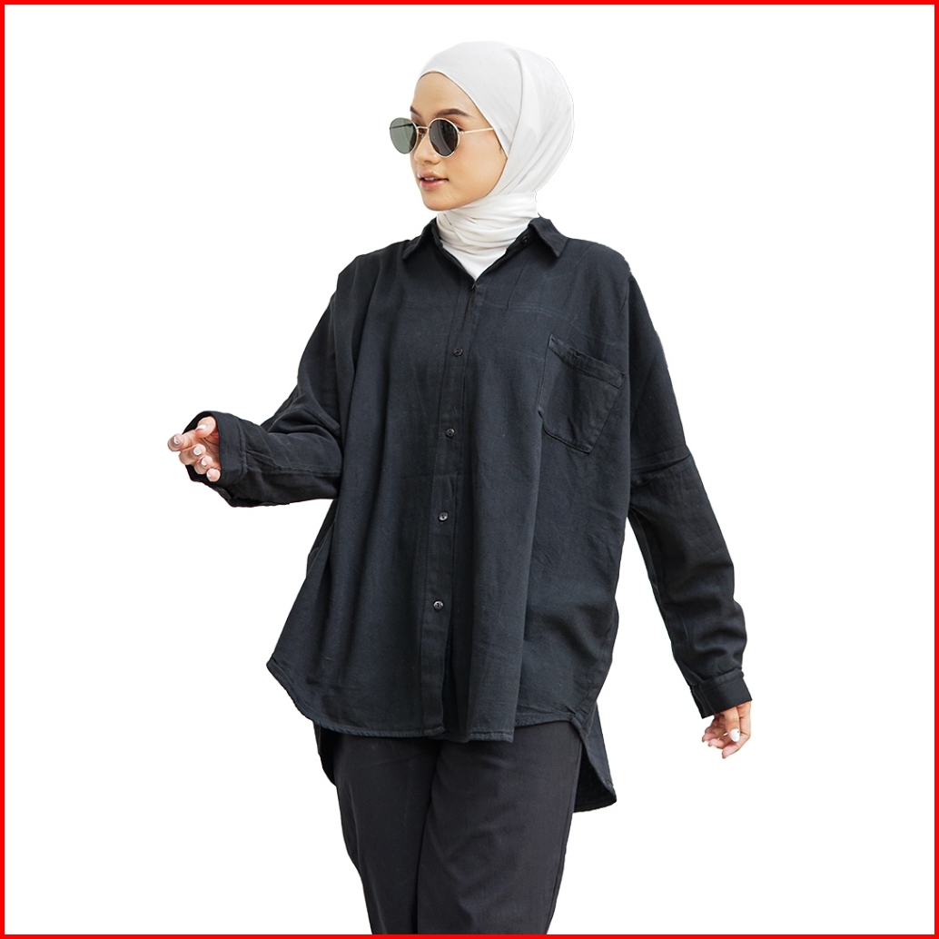 Jiniso Kemeja Oversize Shirt Jet Black Hyper Active