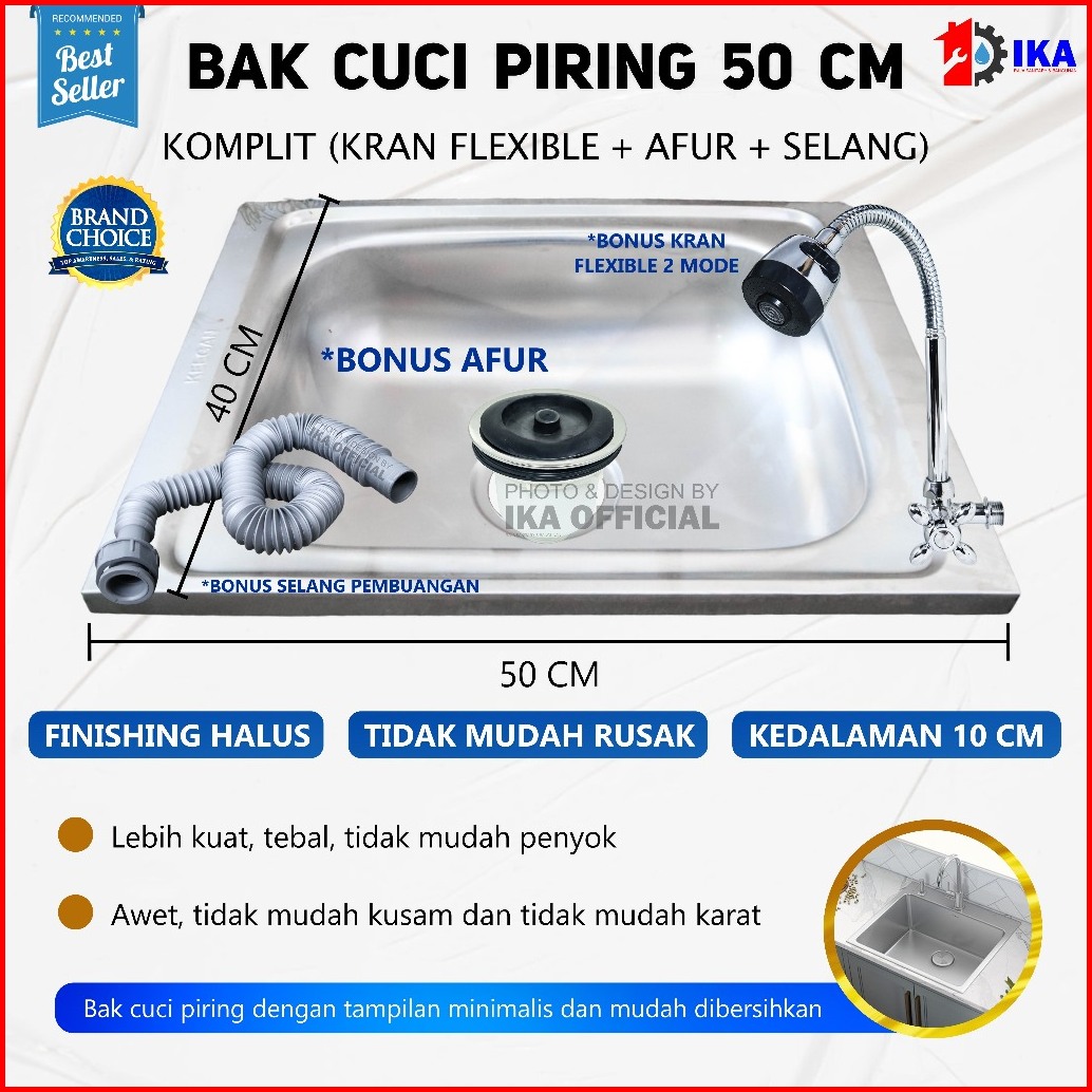 Bak Cuci Piring Kitchen Sink Stainless Steel 50 X 40 Cm Paket Bak Cuci Piring Afur Kran Fleksibel Cuci Piring Kitchen Si