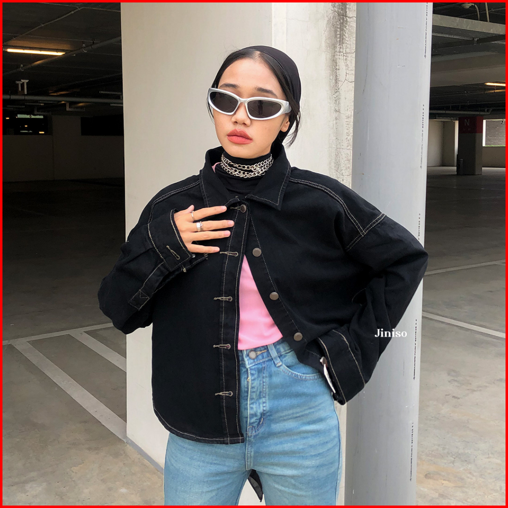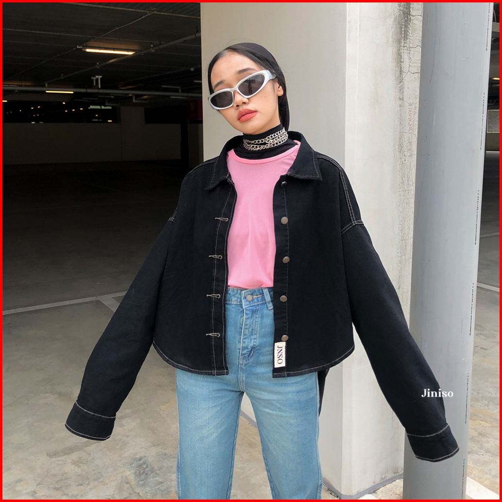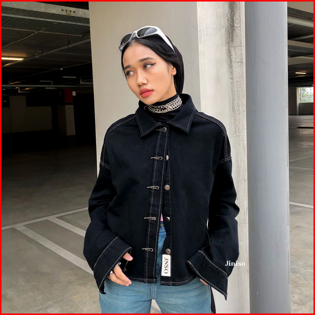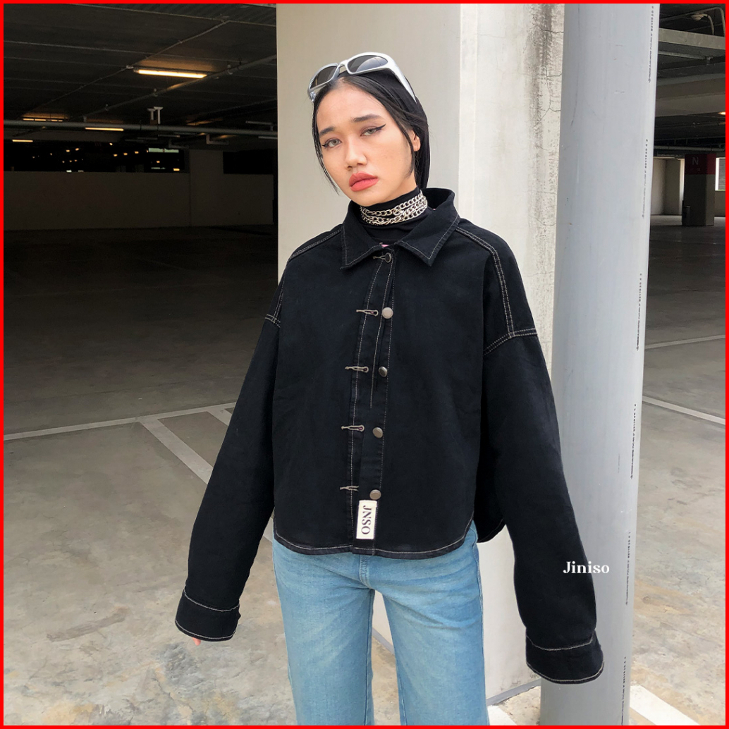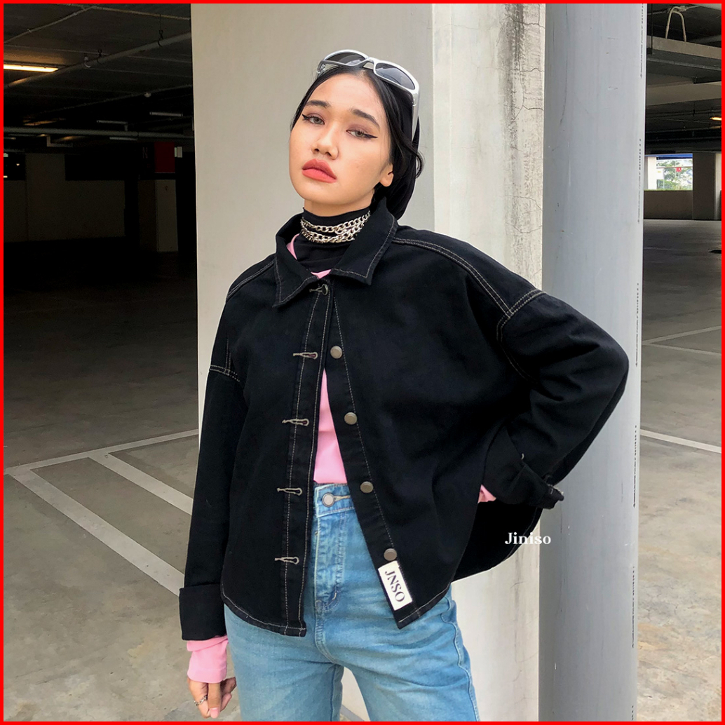 Jiniso Jaket Crop Jeans Oversize Belle Basic Black Oreo