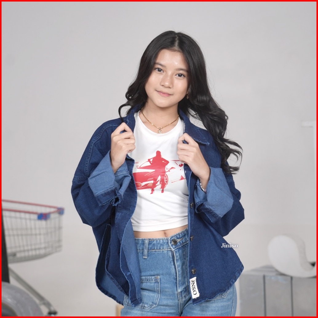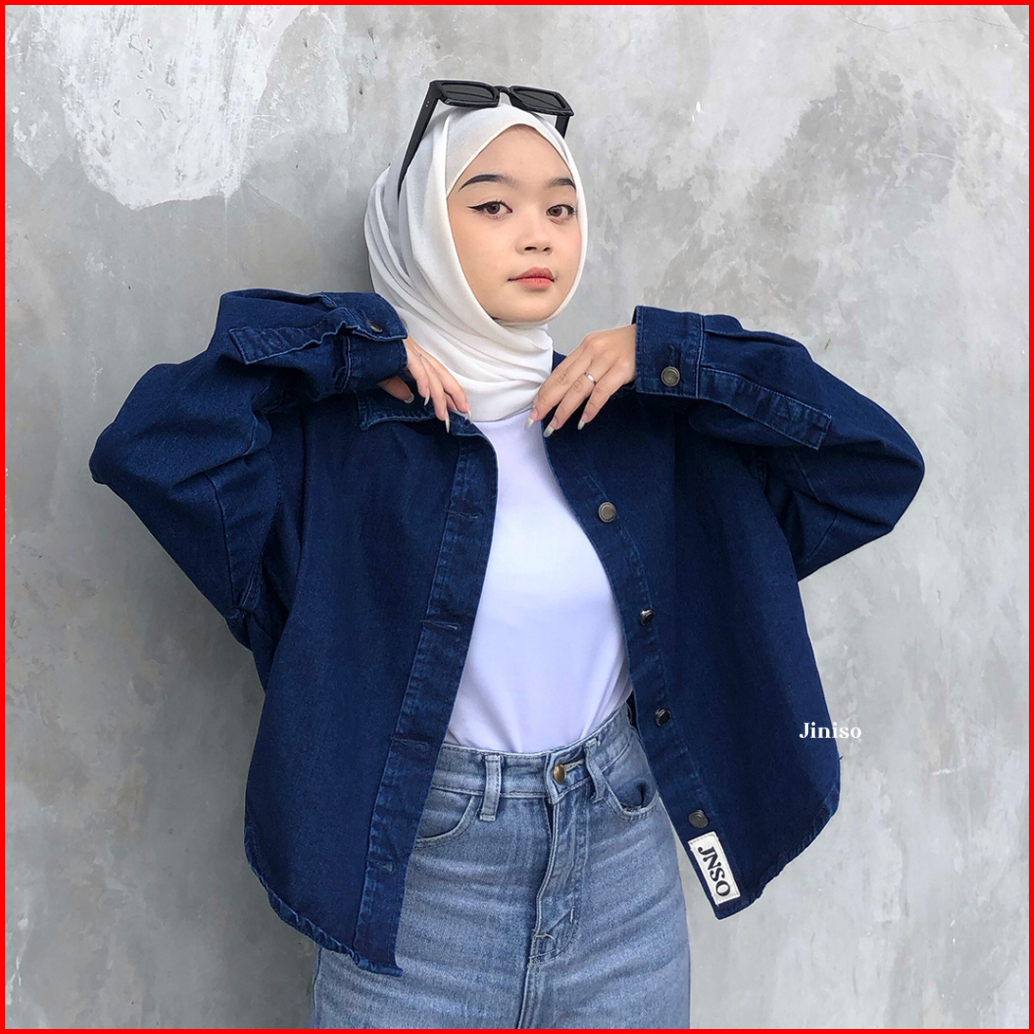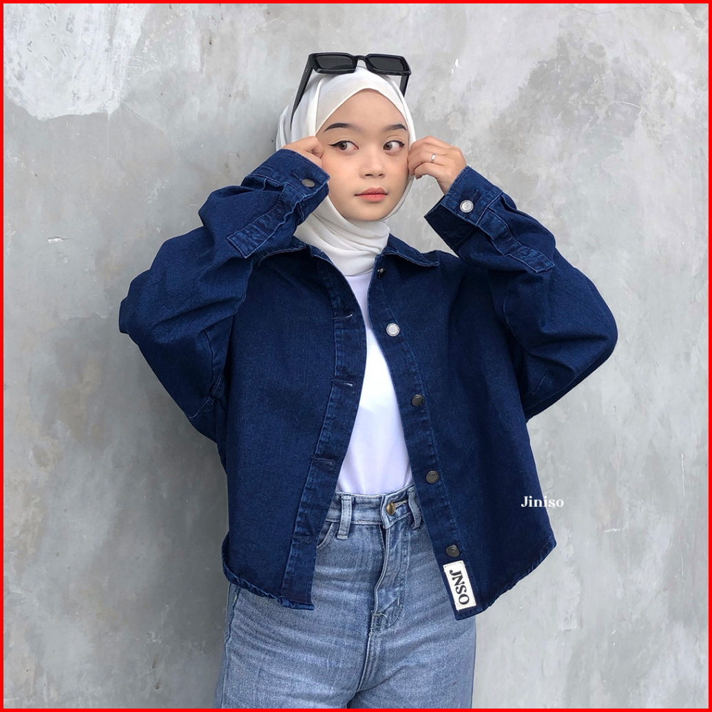 Jiniso Jaket Crop Jeans Oversize Belle Basic Blue Black