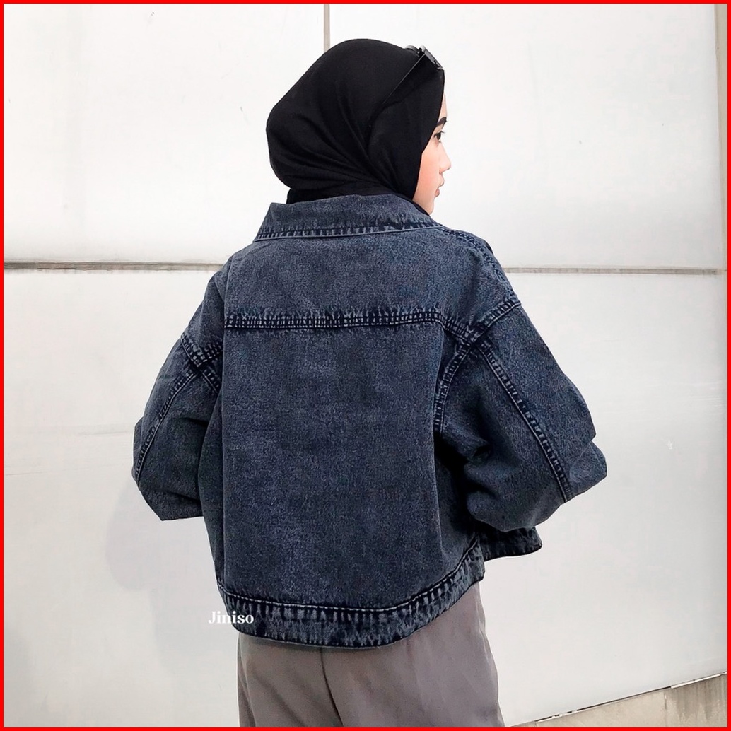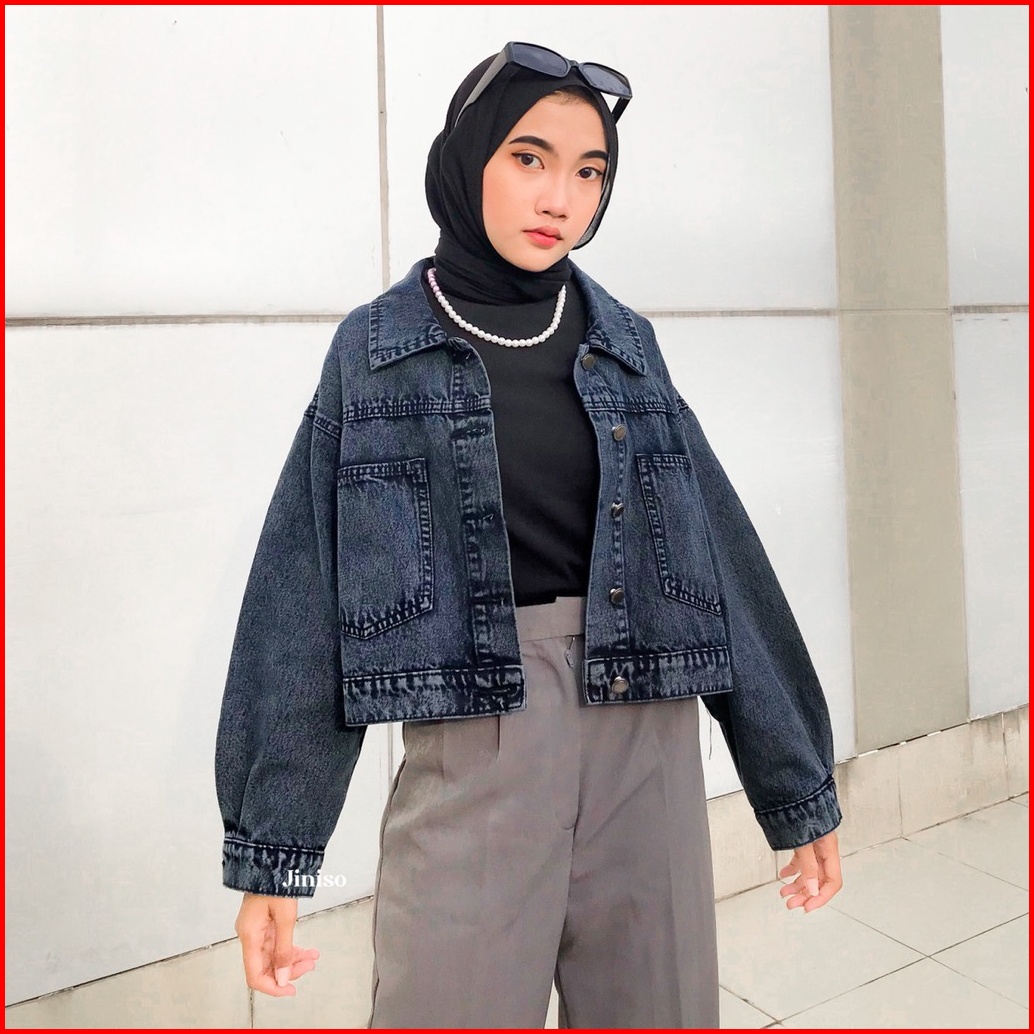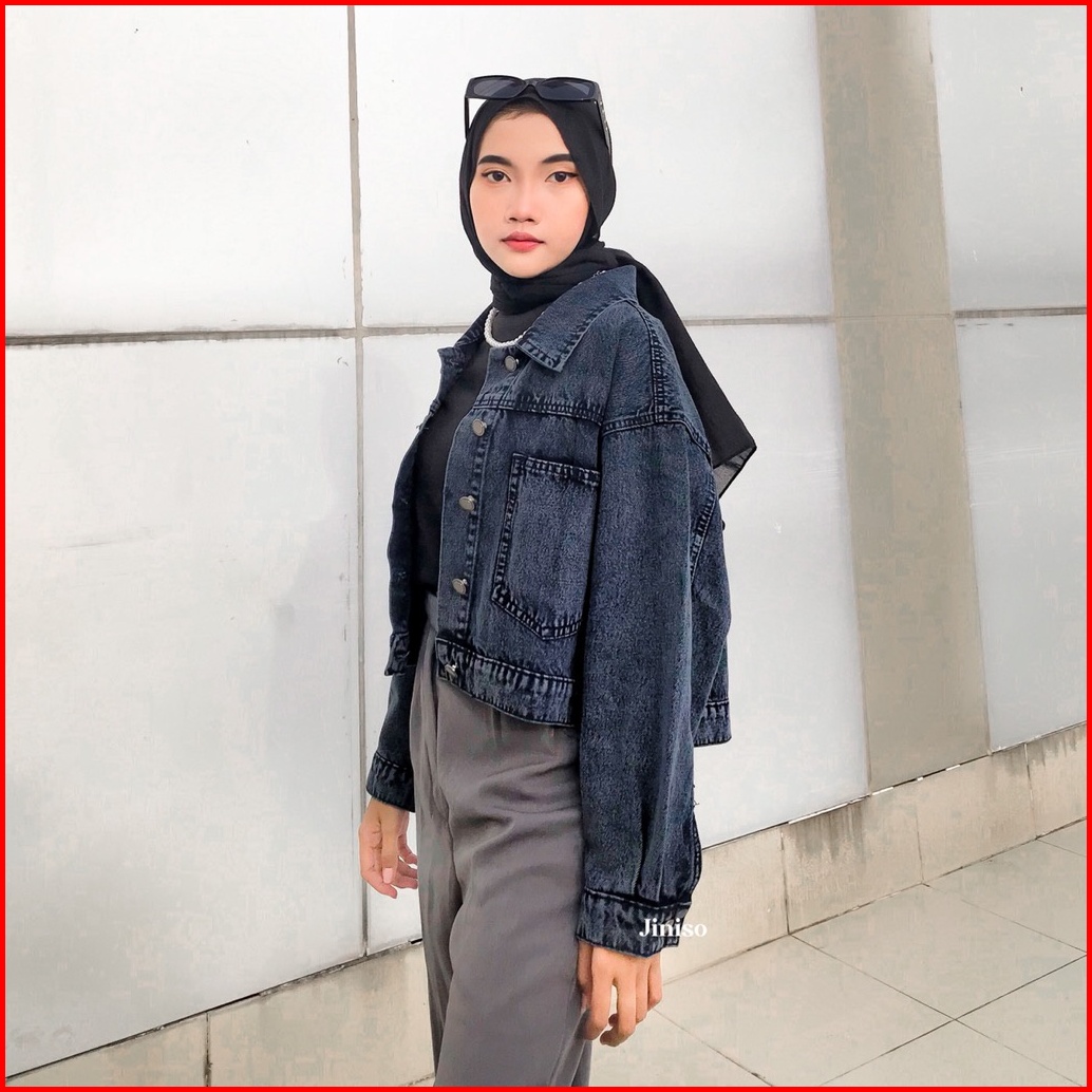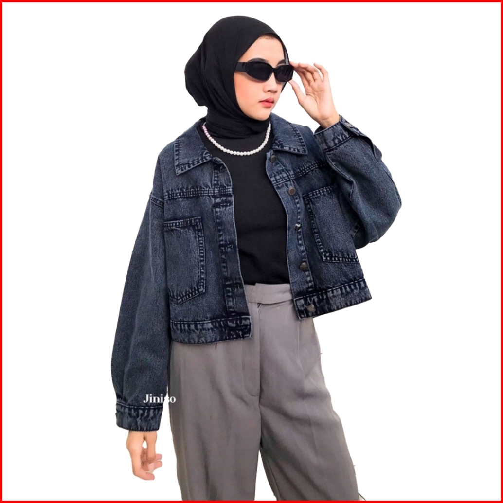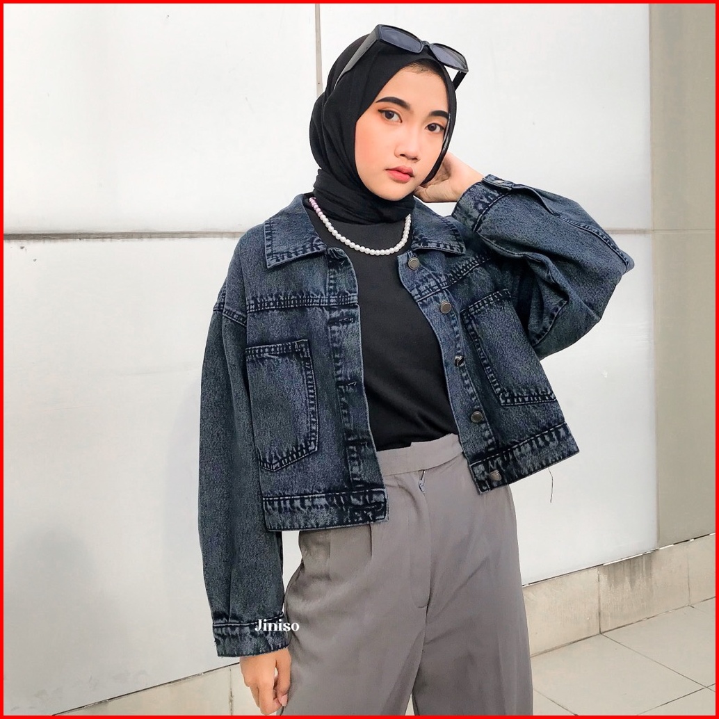 Jiniso Jaket Crop Jeans Oversize Pocket Black Acid