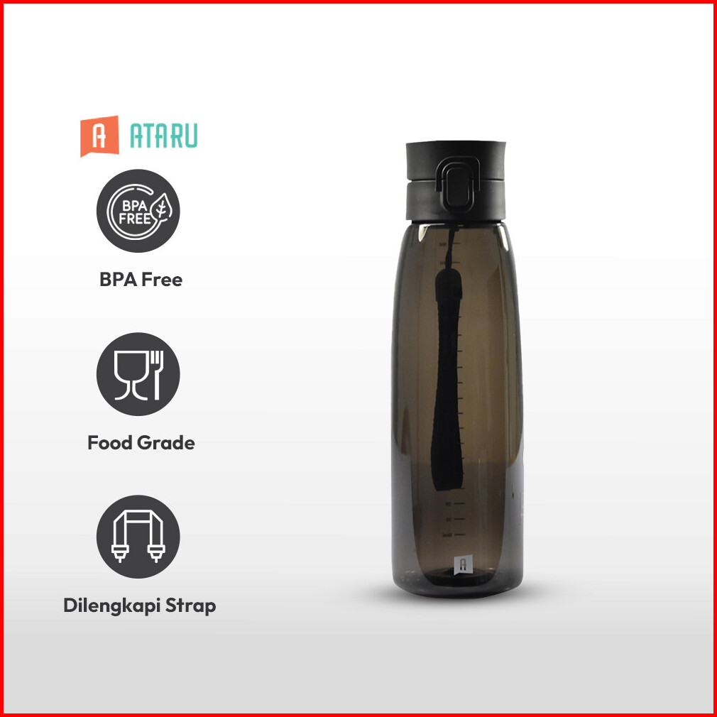 Ataru 1 Ltr Botol Minum Tritan Dengan Strap - Hitam Water Drinking Bottle Botol Air Bpa Free Wadah Minuman Perlengkapan