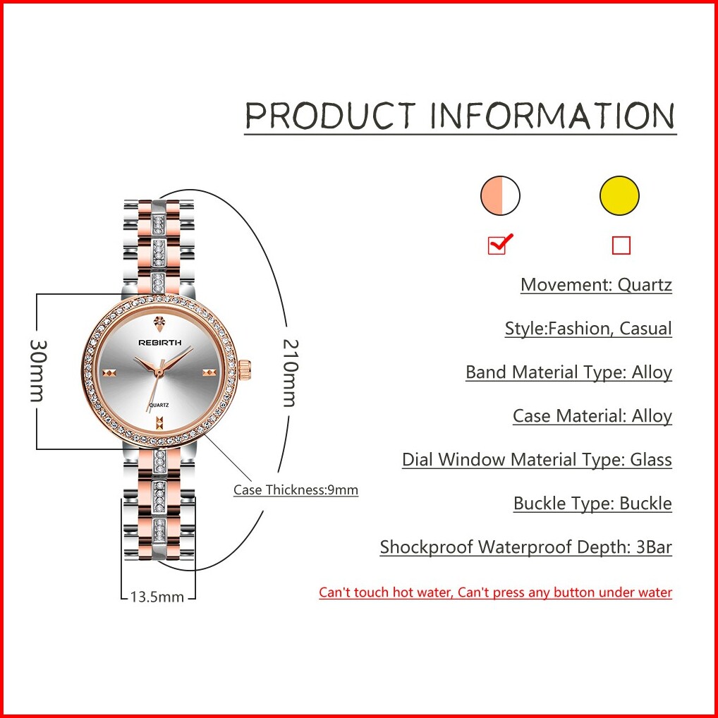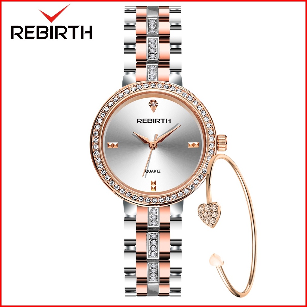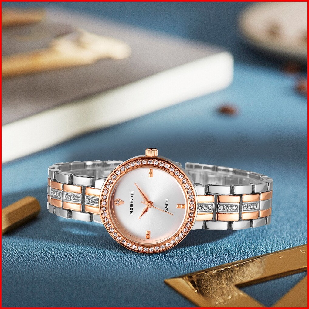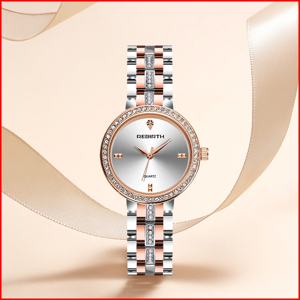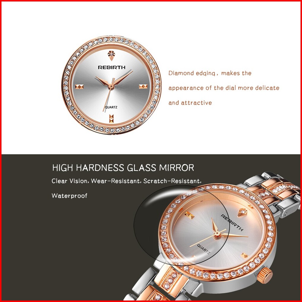 Rebirth Jam Tangan Wanita Mewah Kuarsa Tali Stainless Steel Jam Wanita Anti Air Jam Tangan Cewek Original