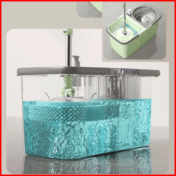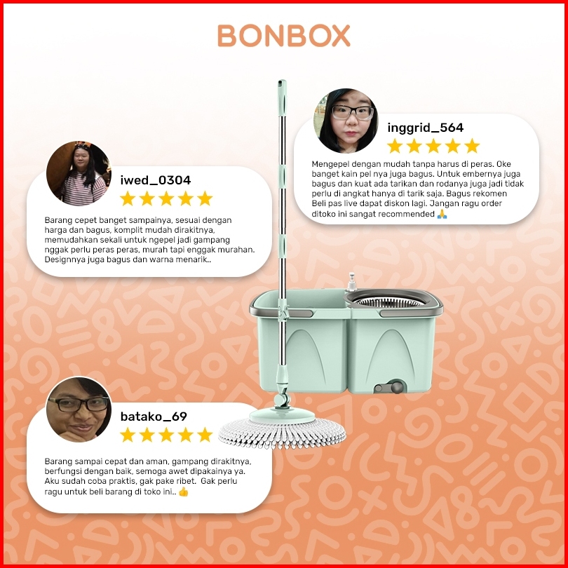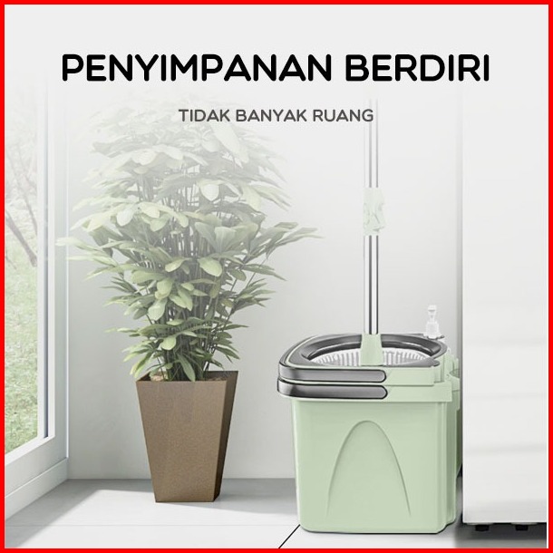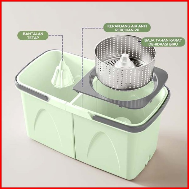 30kbonbox Alat Pel Lantai 2in1 Dapat 2 Kain Refill Ember Lepas 2 Kain Pel Terpisah Spin Mop Pembersih Lantai Bct706