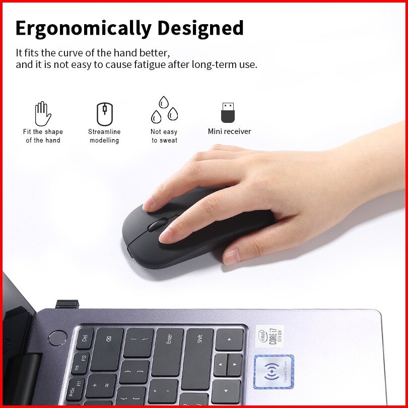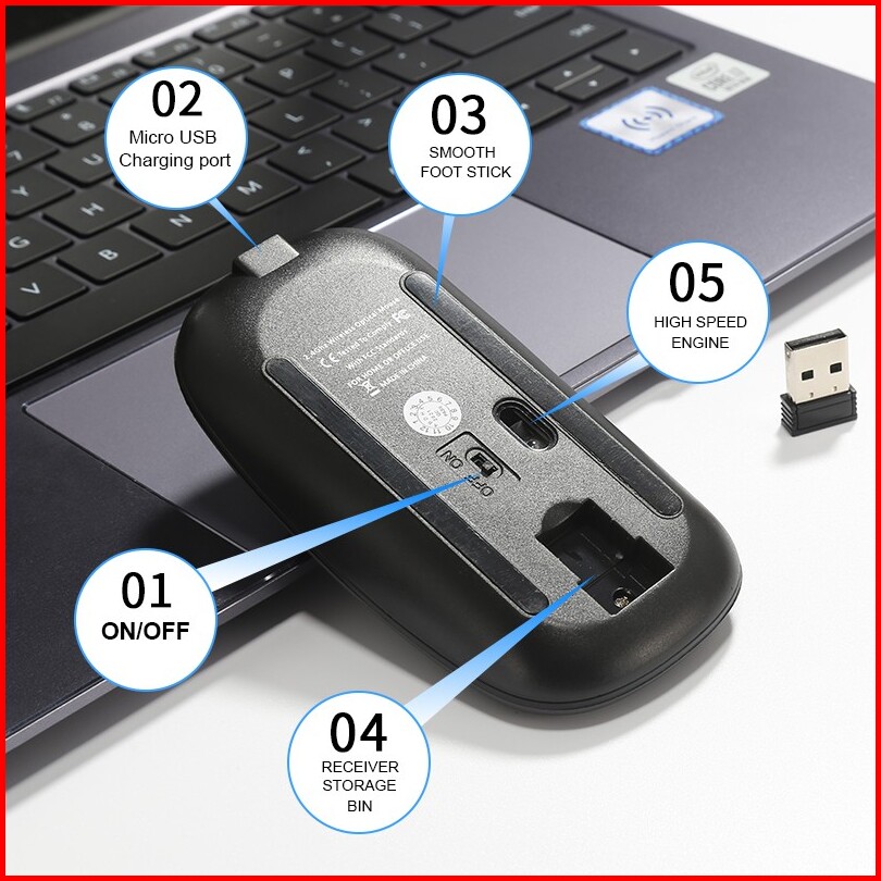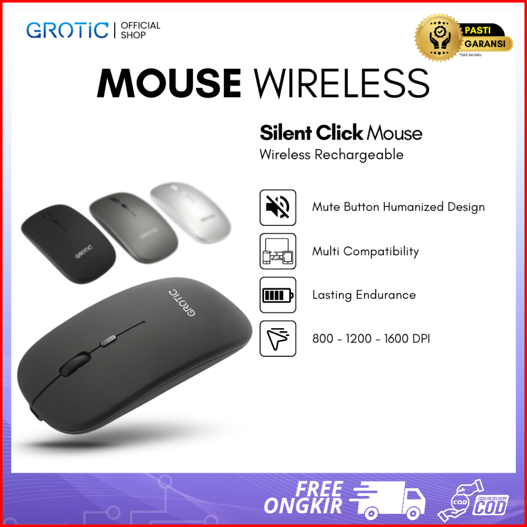 Grotic Mouse Wireless X1 Silent Rechargeable 2.4ghz 1600dpi Dengan Receiver Usb Untuk Pc Laptop