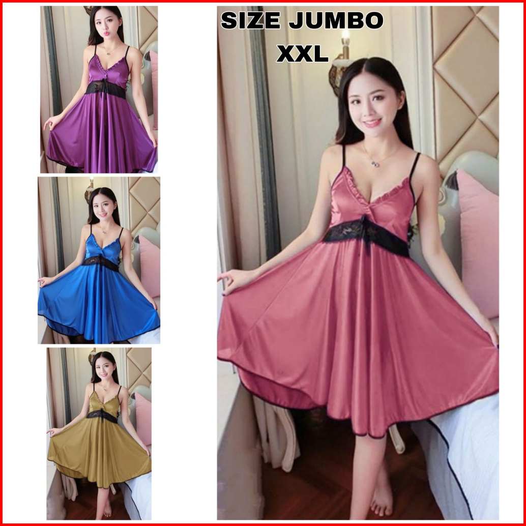 Dtree . Sania Dress Lingerie Jumbo Sexy Brukat Hitam Besar Fit Xxl Baju Tidur Wanita Dewasa 342