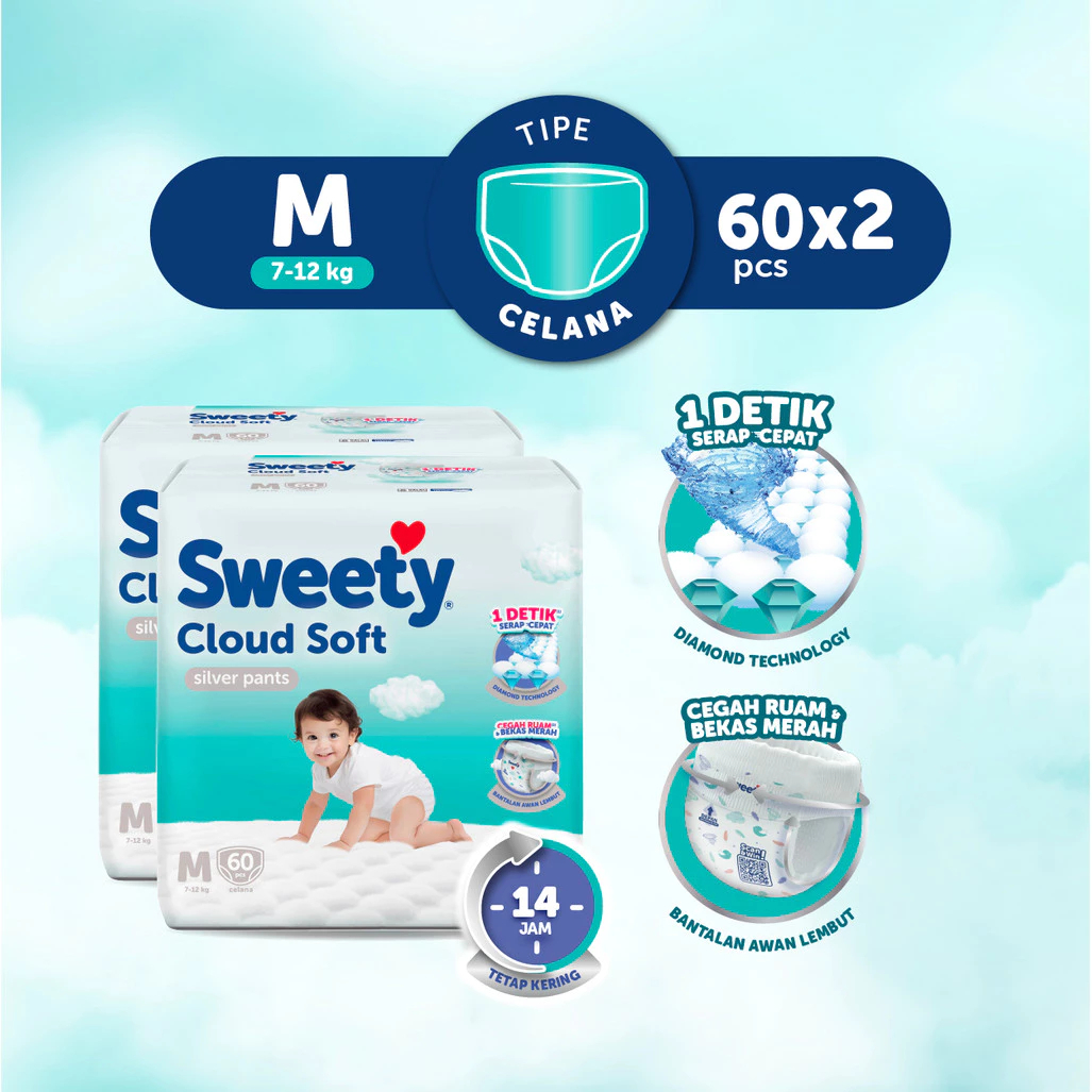 PAKET 2 BALL SWEETY SILVER PANTS M60 [2 PACK] POPOK CELANA BAYI