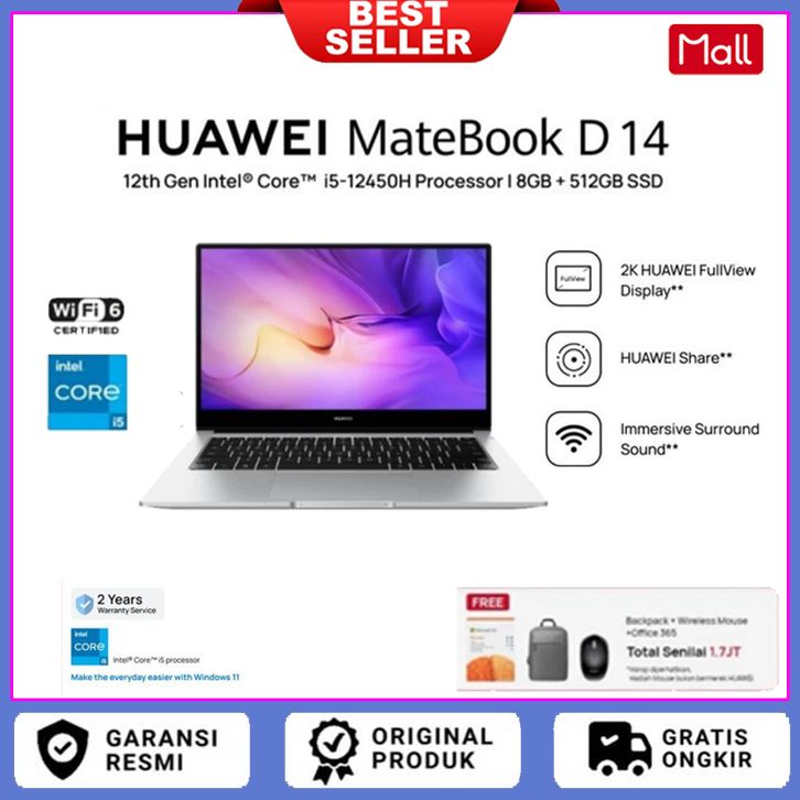 Official Store 🔥 HUAWEI MateBook D14 12th Gen Intel Core i5 12450H 8GB RAM 512GB SSD